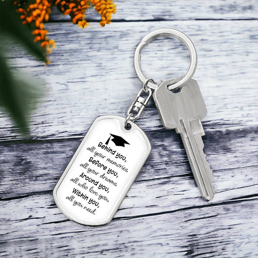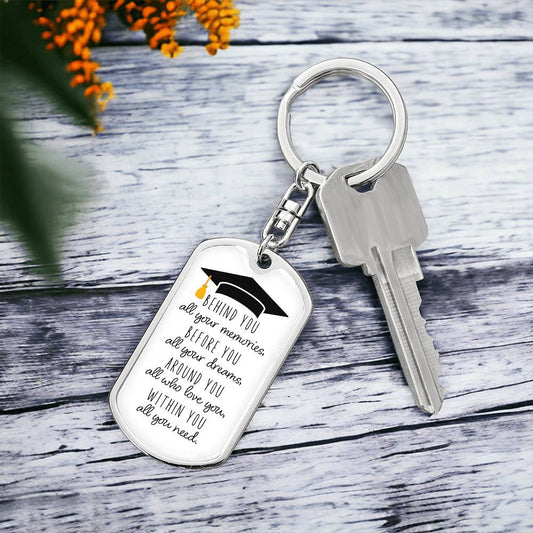 Dog Tag Keychain - Graduation Cap - Memories - Gift for Graduation, Birthday or Holiday