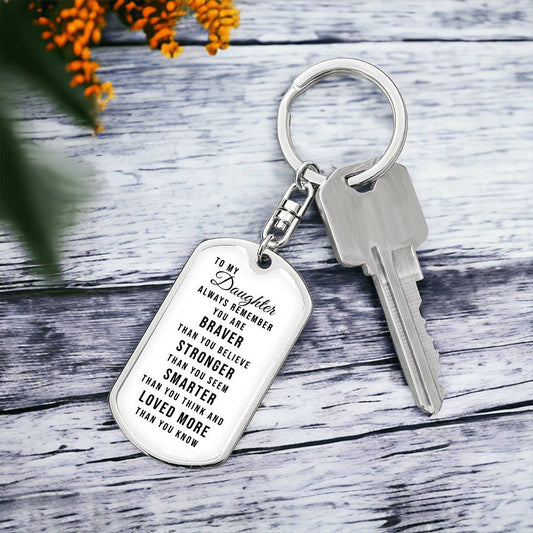 Dog Tag Keychain - To My Daughter - You Are Braver - Gift for Birthday or Holiday