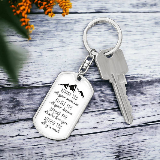 Dog Tag Keychain - Mountains - Memories - Gift for Graduation, Birthday or Holiday