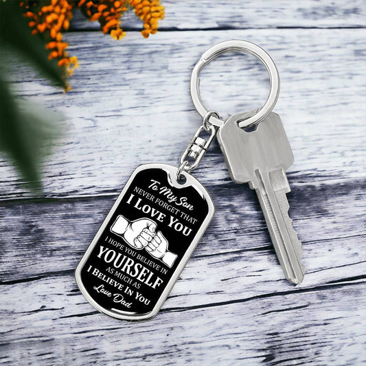 Dog Tag Keychain - To My Son - I Believe in You - Love Mom - Gift for Birthday or Holiday