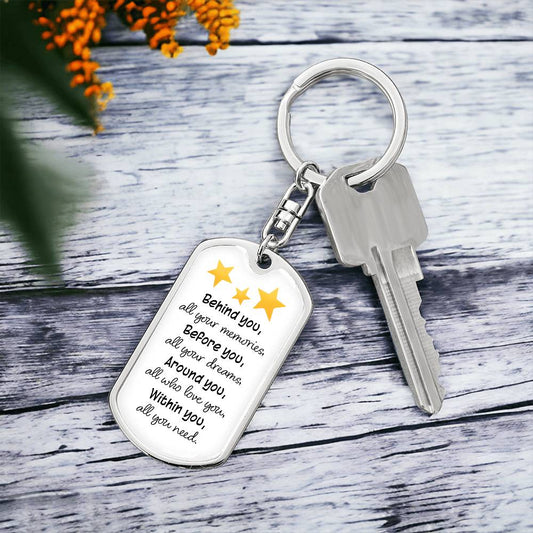 Dog Tag Keychain - Stars - Memories - Gift for Graduation, Birthday or Holiday