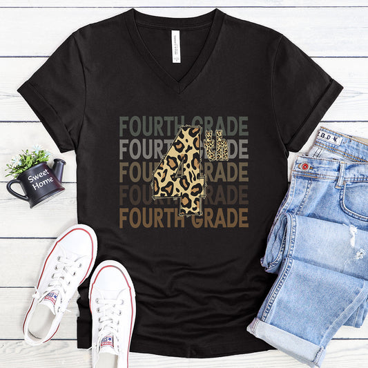 Leopard Print 4th on Fourth Grade - V-Neck Tee
