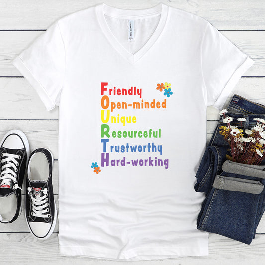 Rainbow FOURTH Grade Positive Teacher V-neck T-shirt