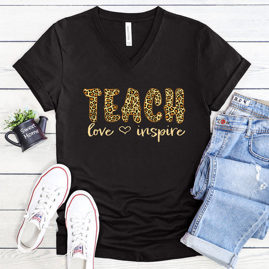 Teach Love Inspire leopard print - Teacher V-Neck Tee