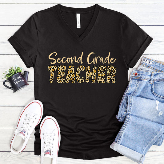 Second Grade TEACHER in Leopard print - V-Neck Tee