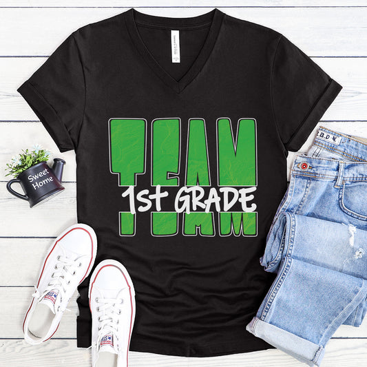 TEAM 1st Grade - Leaf Green - V-neck T-shirt