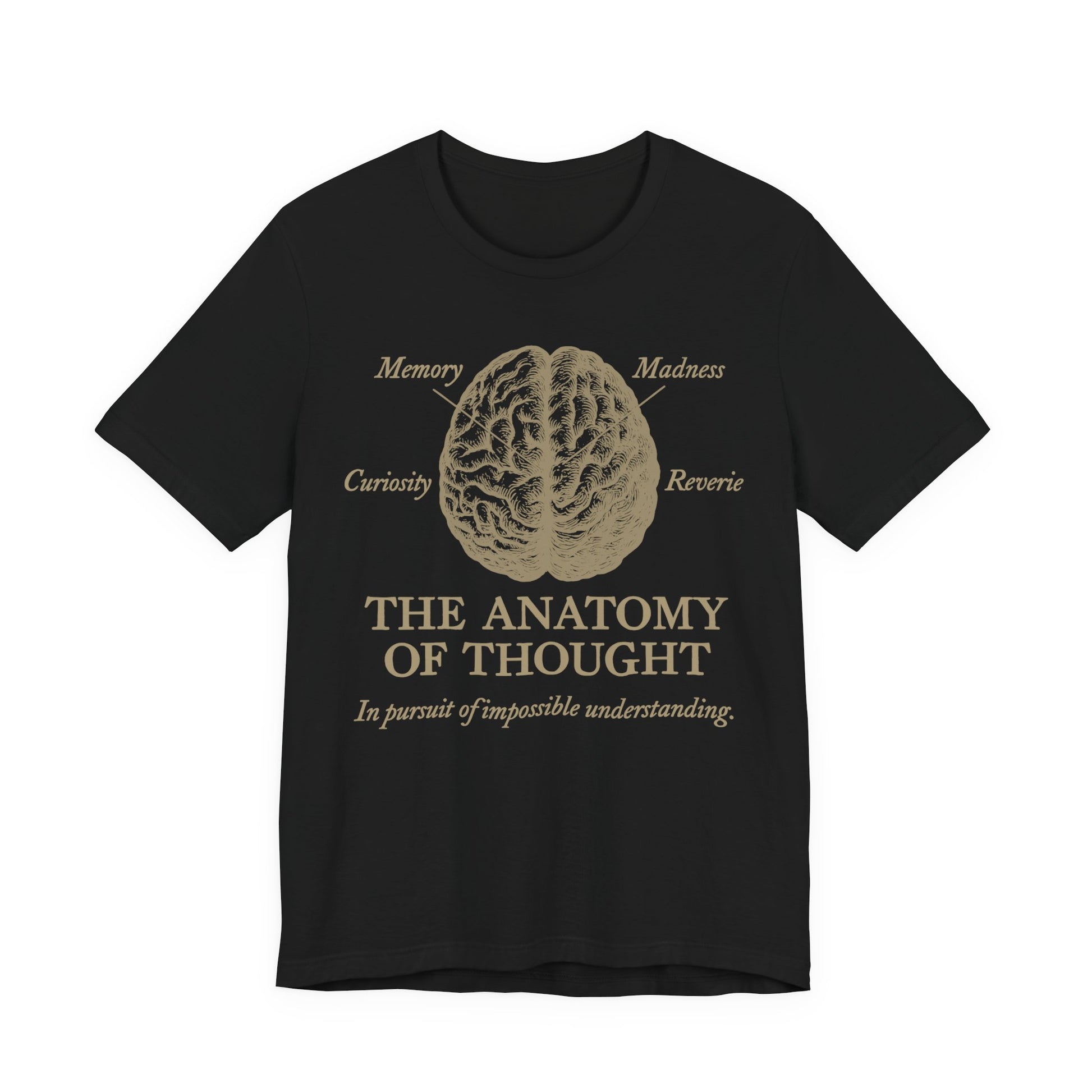 "The Anatomy of Thought" - A cerebral design for lovers of philosophy, psychology, and the beautiful machinery of the mind. It imagines ideas as anatomical structures, each delicate, deliberate, and worth studying. Scholarly and precise, it’s perfect for intellectuals who dissect their own thoughts as carefully as texts. Wear it as a tribute to curiosity itself.