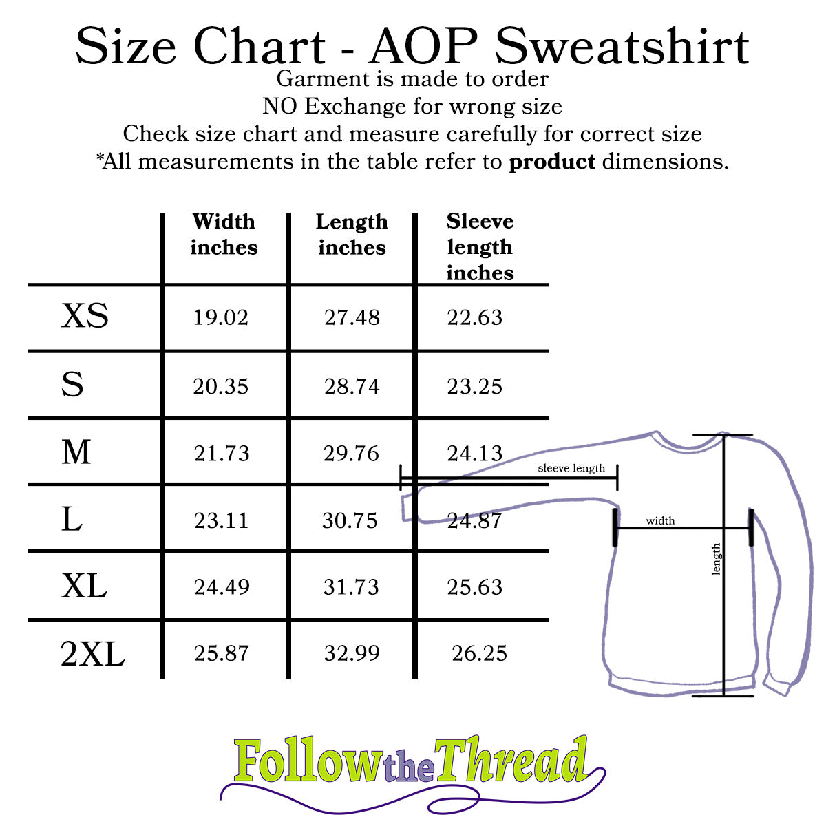 This all over print crewneck sweatshirt is the perfect example of cool. With quality all-over printing capabilities, you won’t be worried about white lines at the seams. This fleece is custom cut and sewn, featuring a crew neck and set-in sleeves to keep you warm.