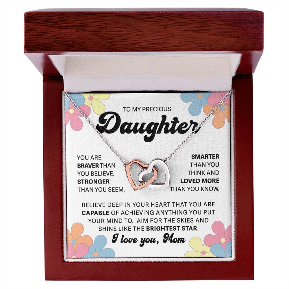 To My Precious Daughter - Shine Like A Star - Interlocking Hearts Necklace - Gift for Birthday, Christmas, or Special Occasion