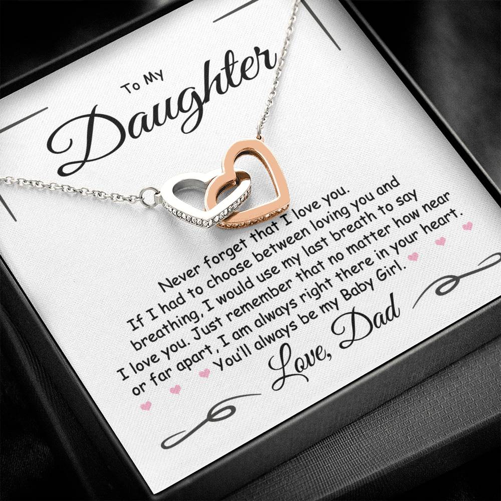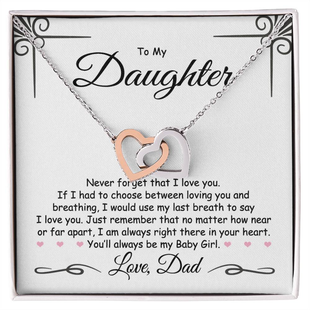 To My Daughter - Never Forget I Love You, Love Dad - Interlocking Hearts Necklace - Gift for Birthday, Christmas, or Special Occasion