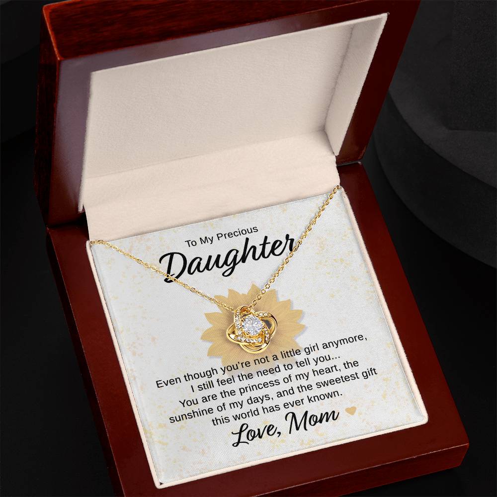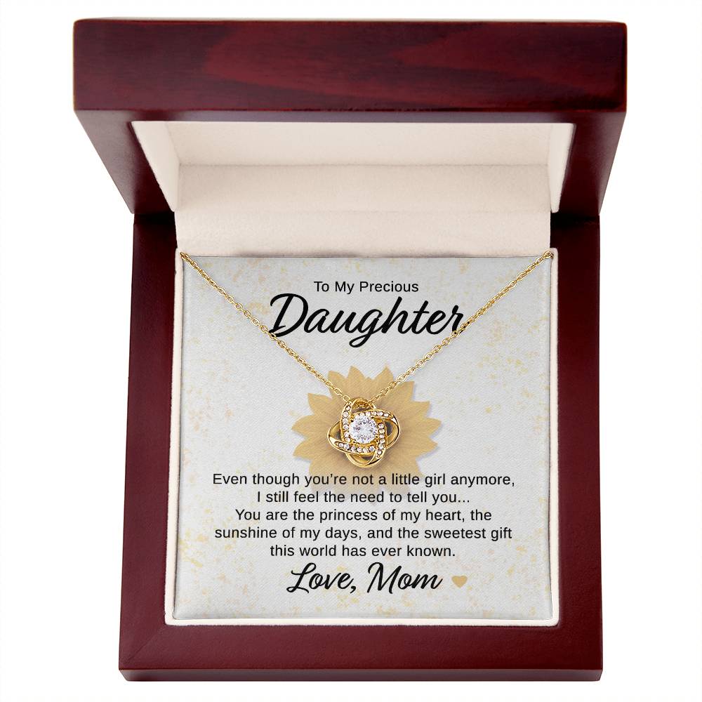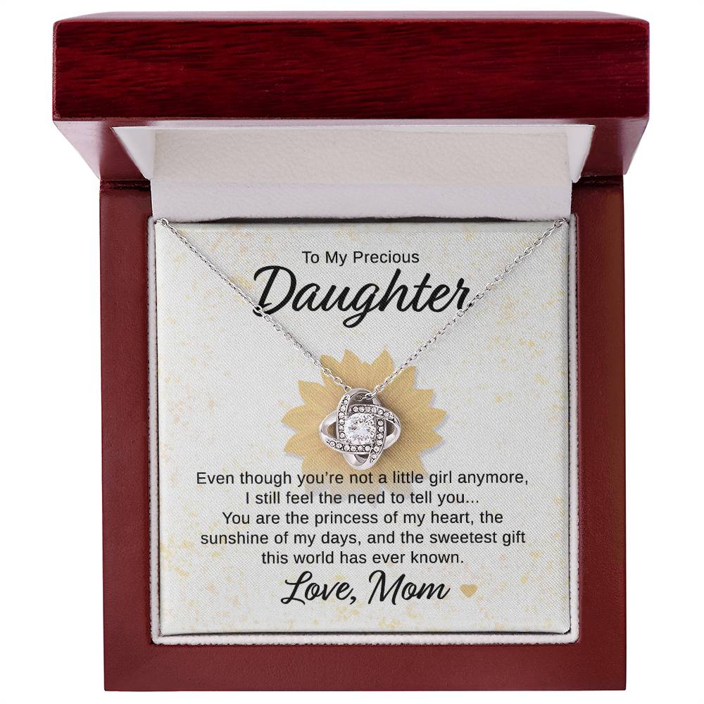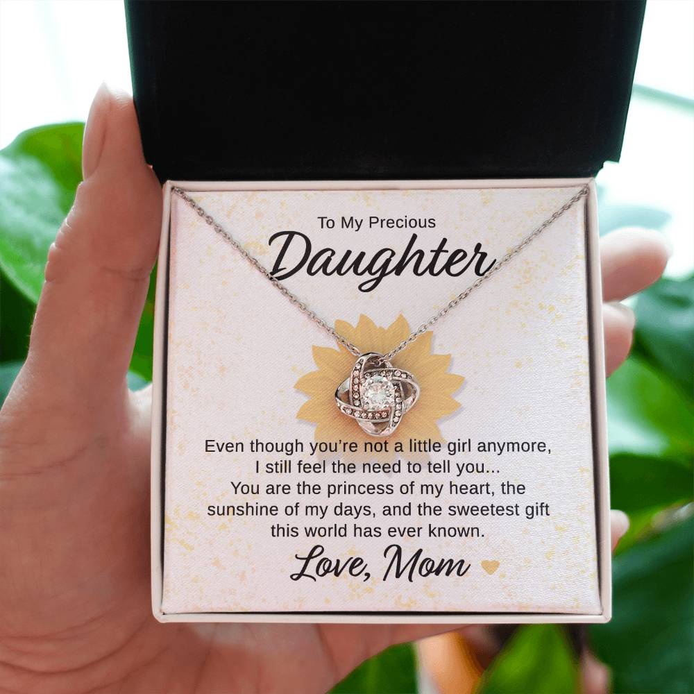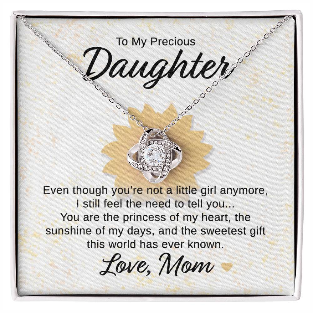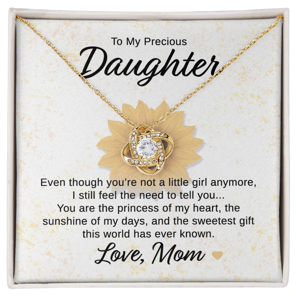 The printed message card included in the box reads: To My Precious Daughter, Even though you're not a little girl anymore, I still feel the need to tell you... You are the princess of my heart, the sunshine of my days, and the sweetest gift this world has ever known. Love, Mom.