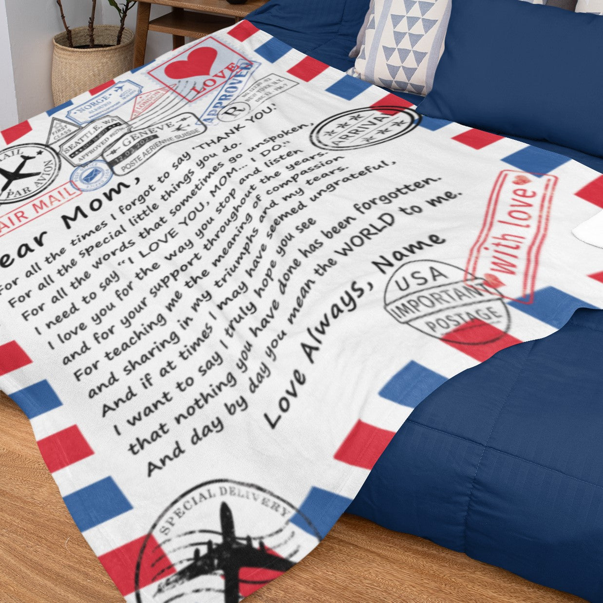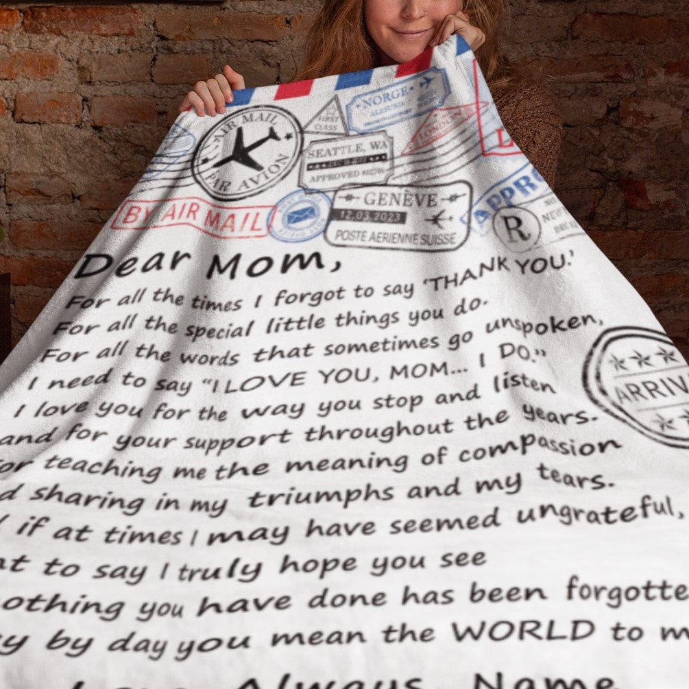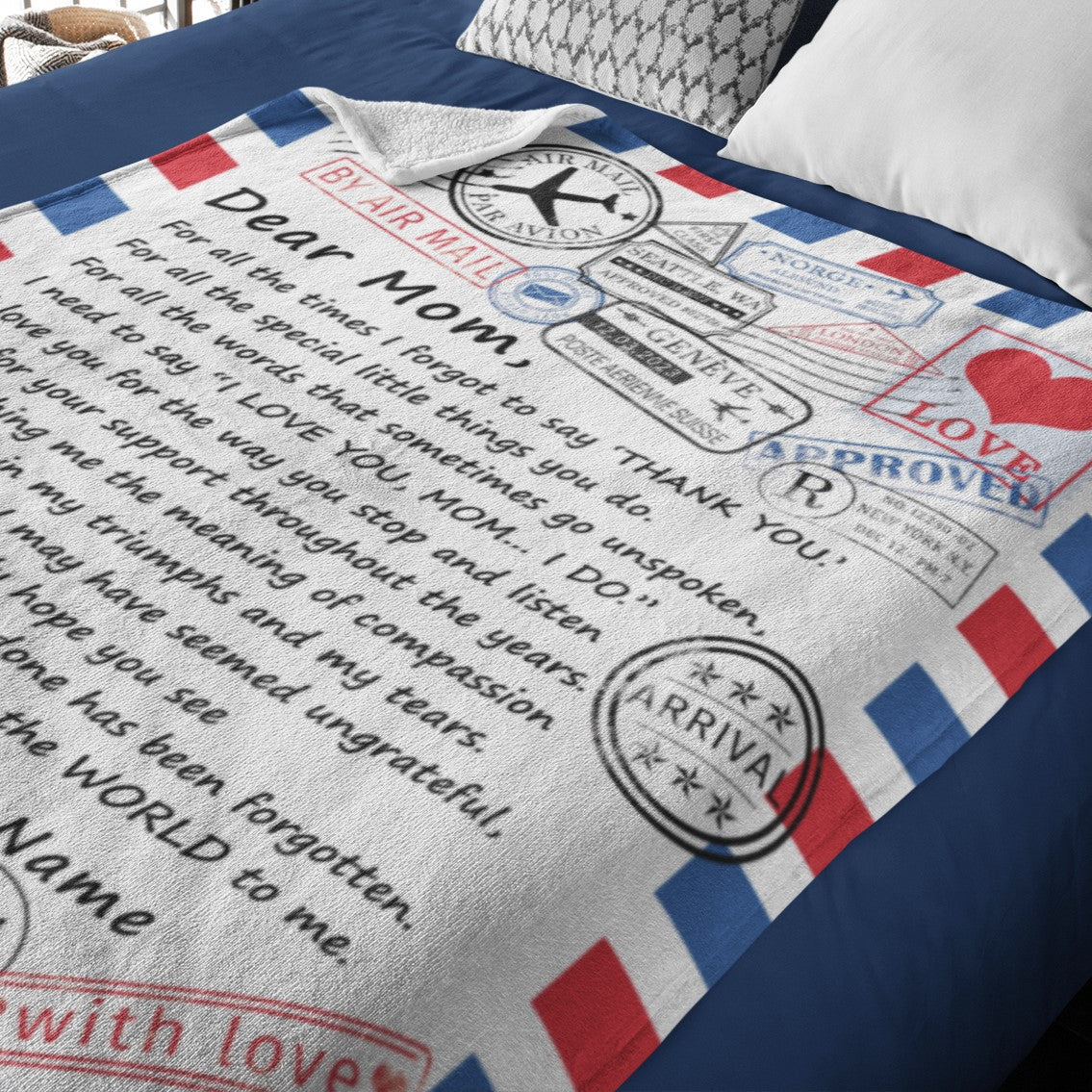 Dear Mom - You Mean the World to Me - Velveteen Plush or Sherpa Blanket - PERSONALIZE