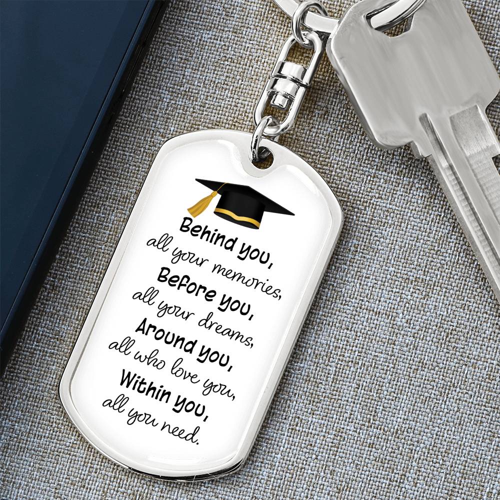 Dog Tag Keychain - Graduation Cap - Love You - Gift for Graduation, Birthday or Holiday