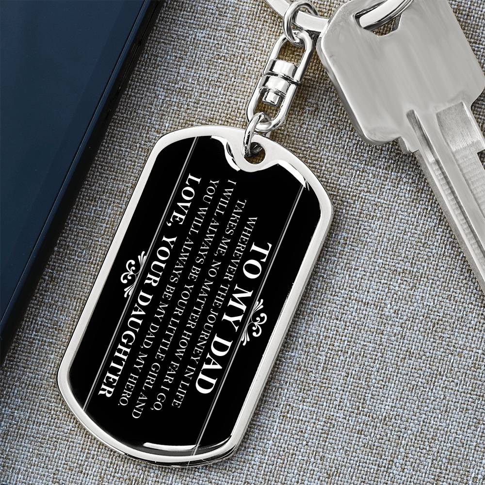 Dog Tag Keychain - To My Dad - You Are My Hero - Love Daughter - Gift for Birthday or Holiday