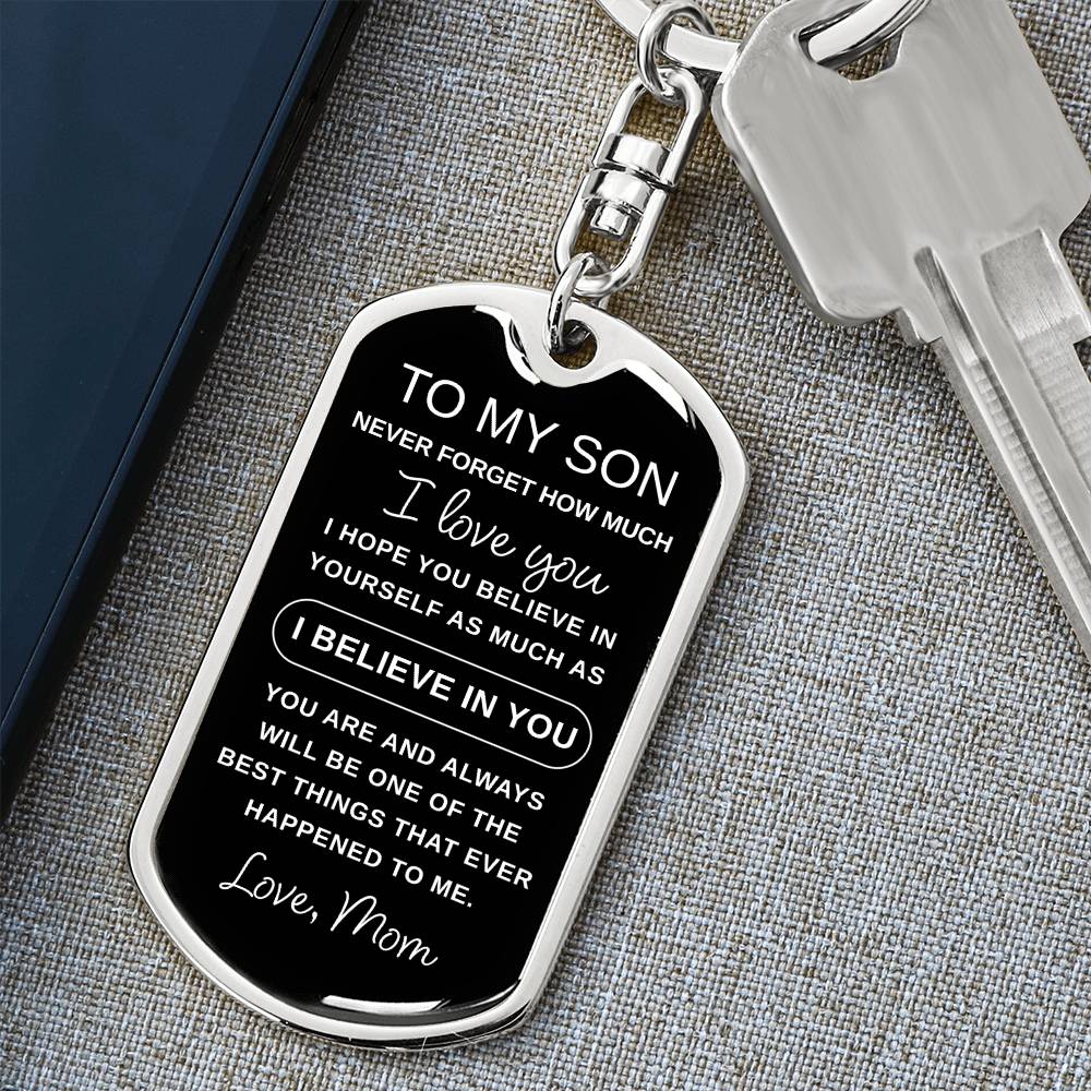 Dog Tag Keychain - To My Son - I Believe in You - Love Mom - Gift for Birthday or Holiday