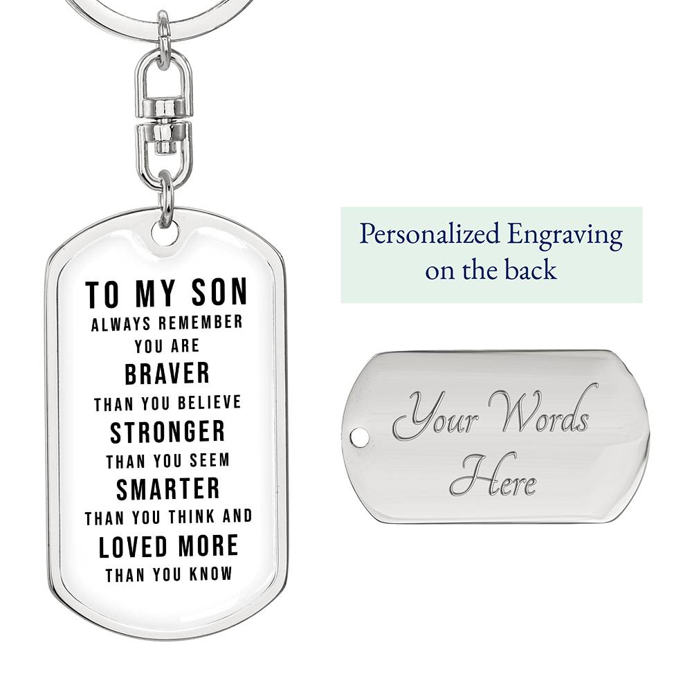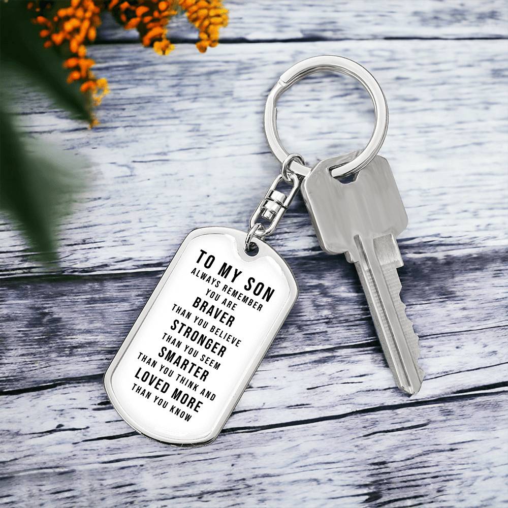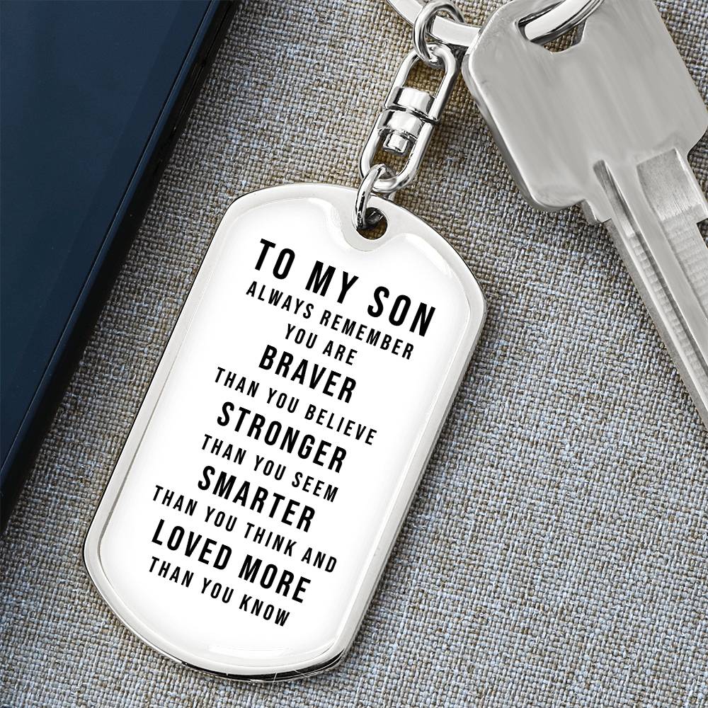 Dog Tag Keychain - To My Son - You Are Braver - Gift for Birthday or Holiday