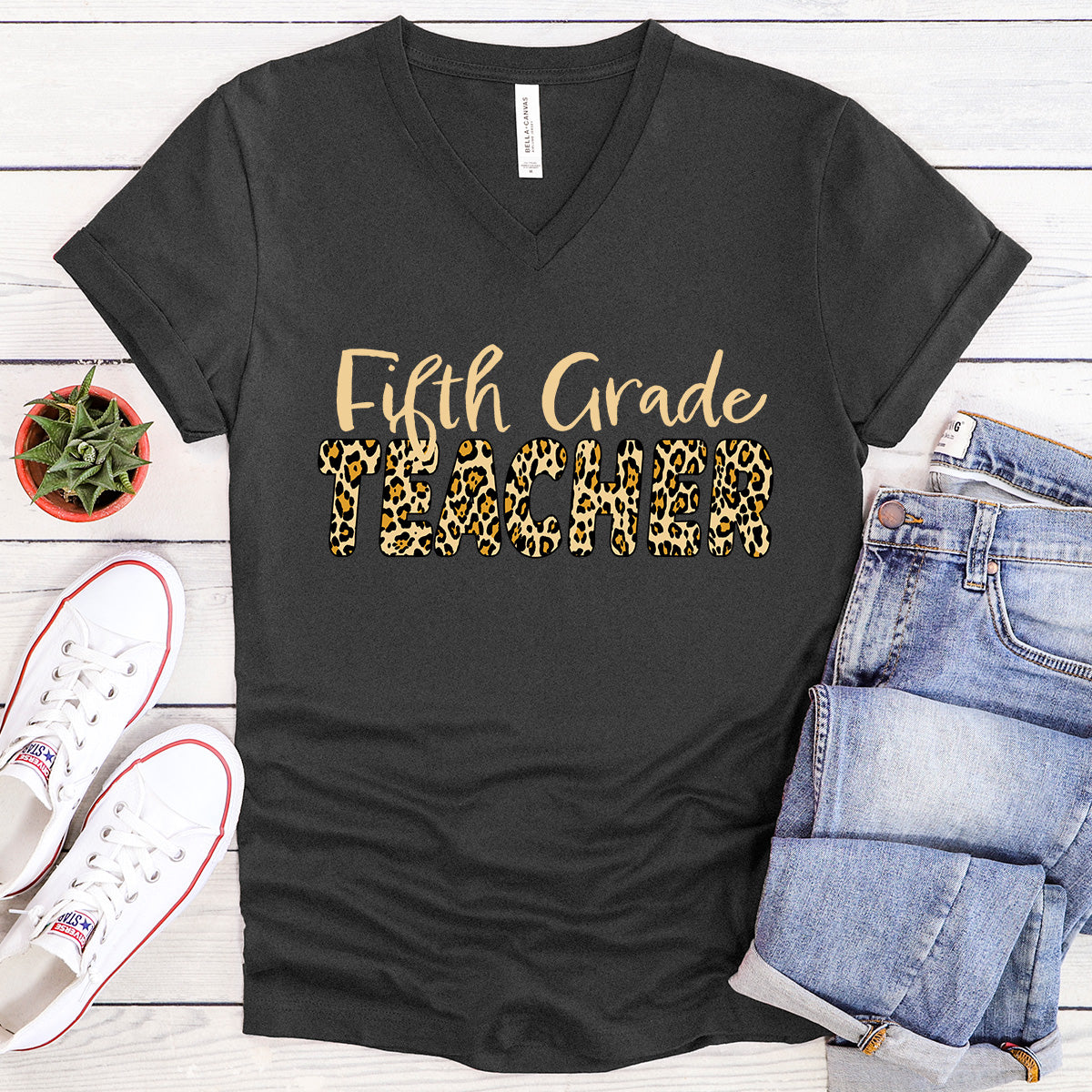 Fifth Grade TEACHER in Leopard print - V-Neck Tee