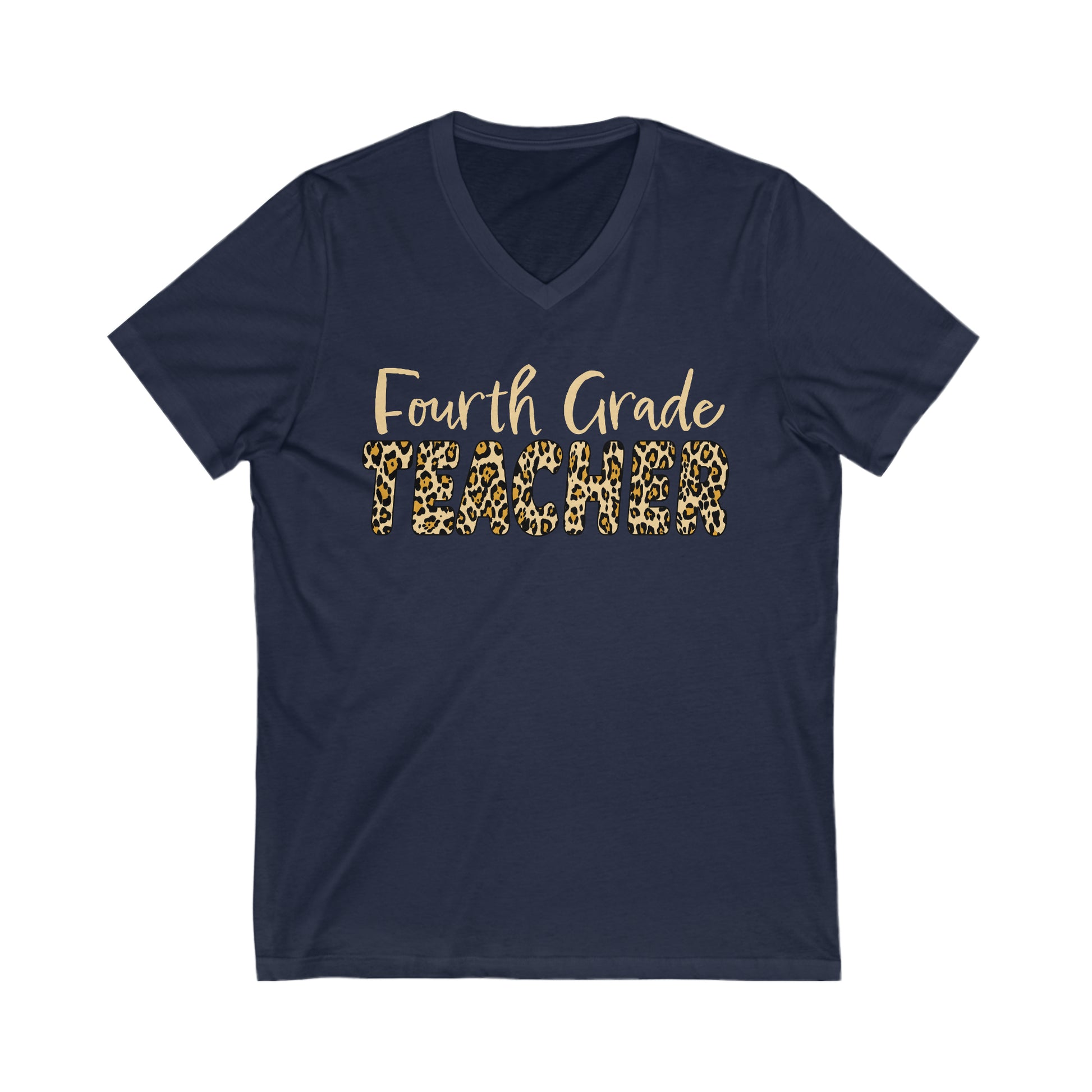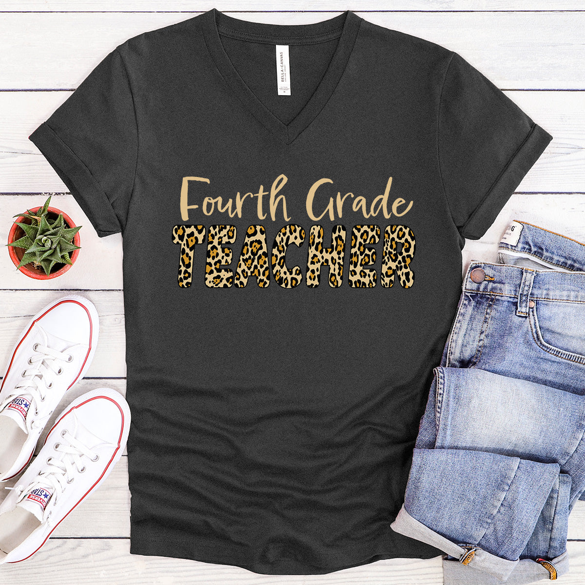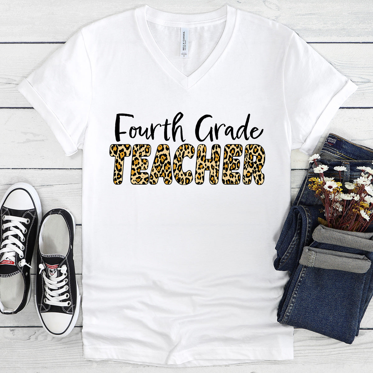 Fourth Grade TEACHER in Leopard print - V-Neck Tee