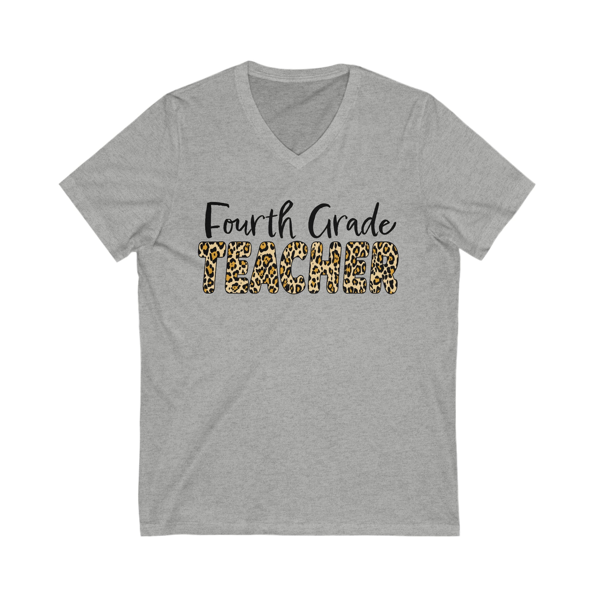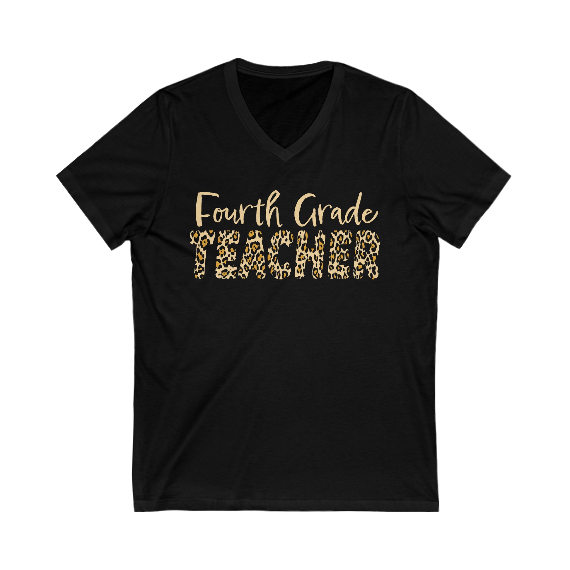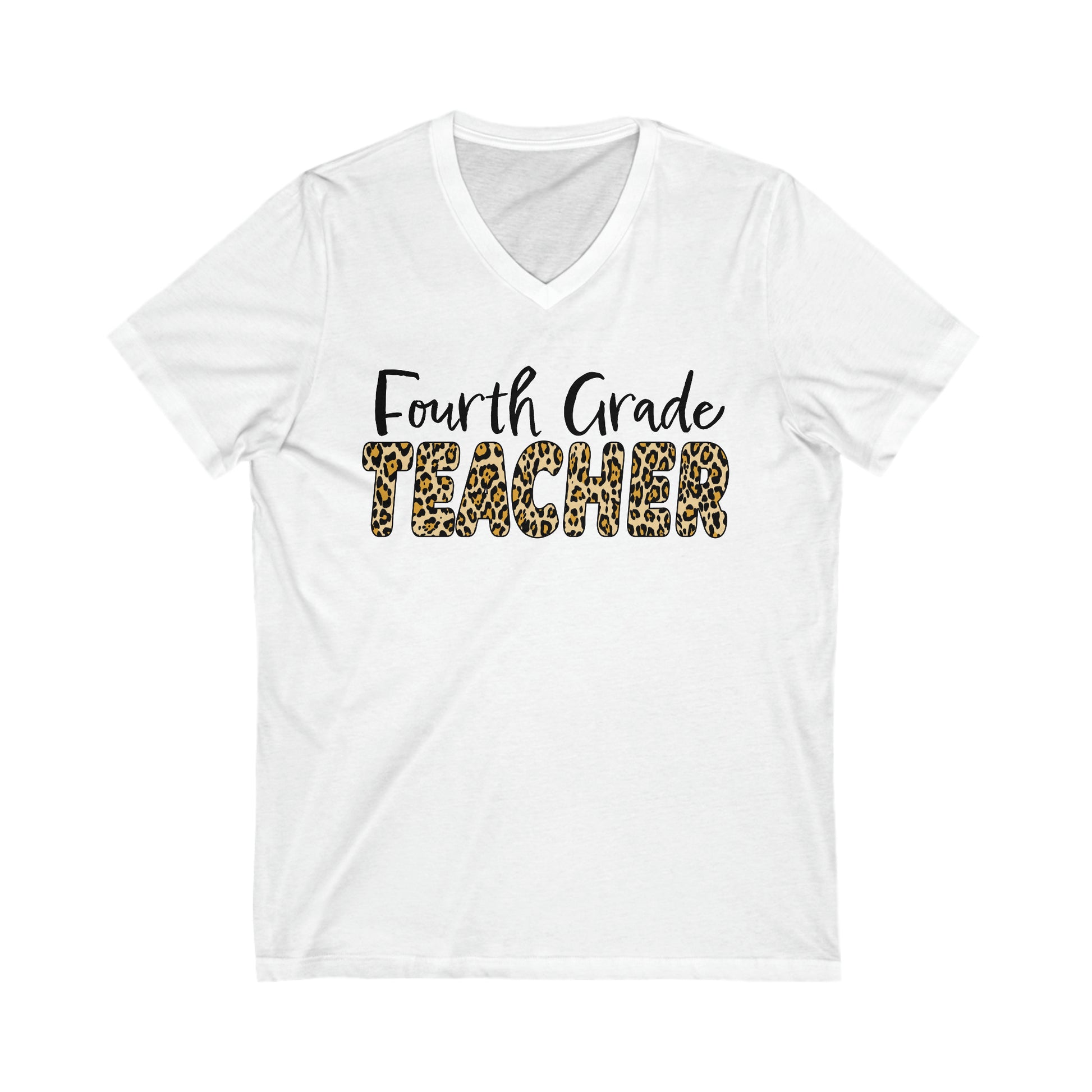 Fourth Grade TEACHER in Leopard print - V-Neck Tee