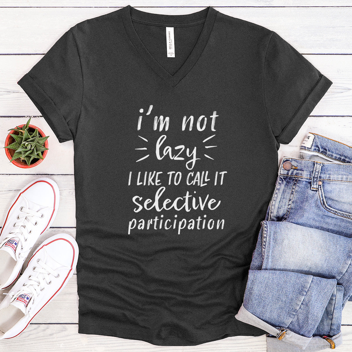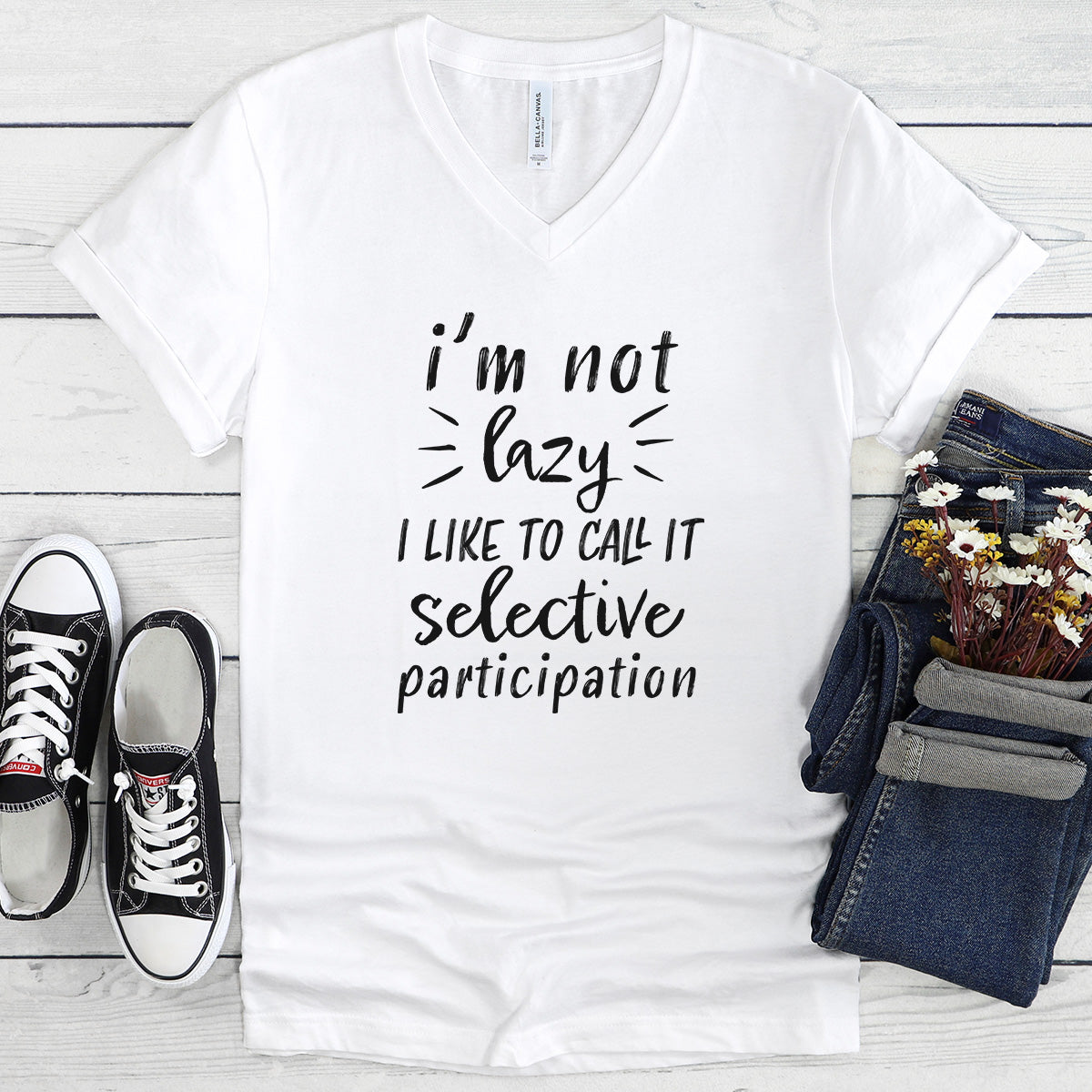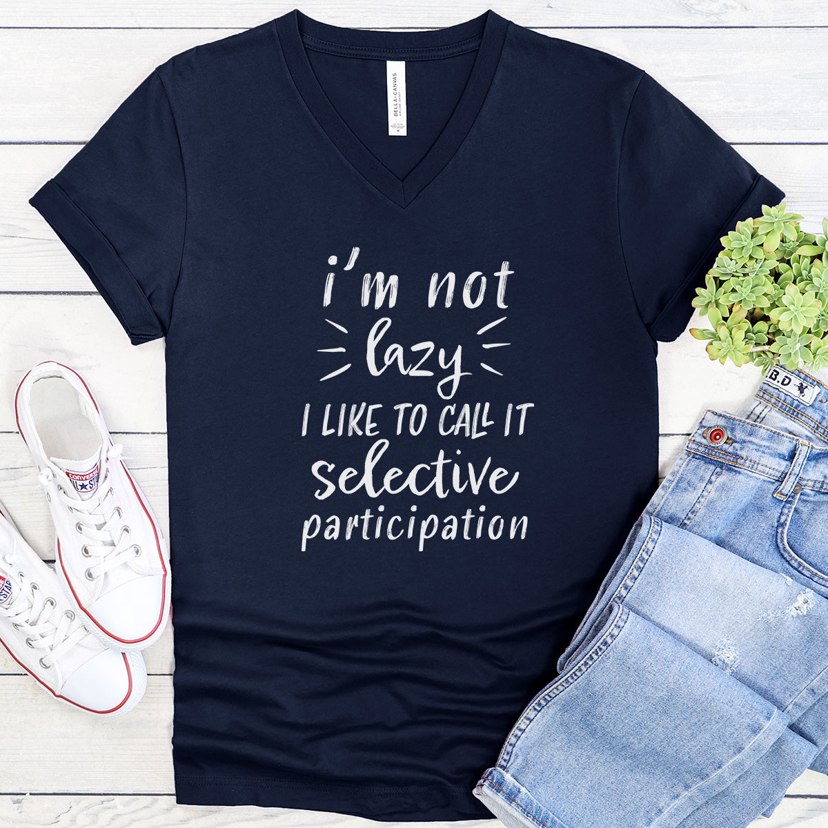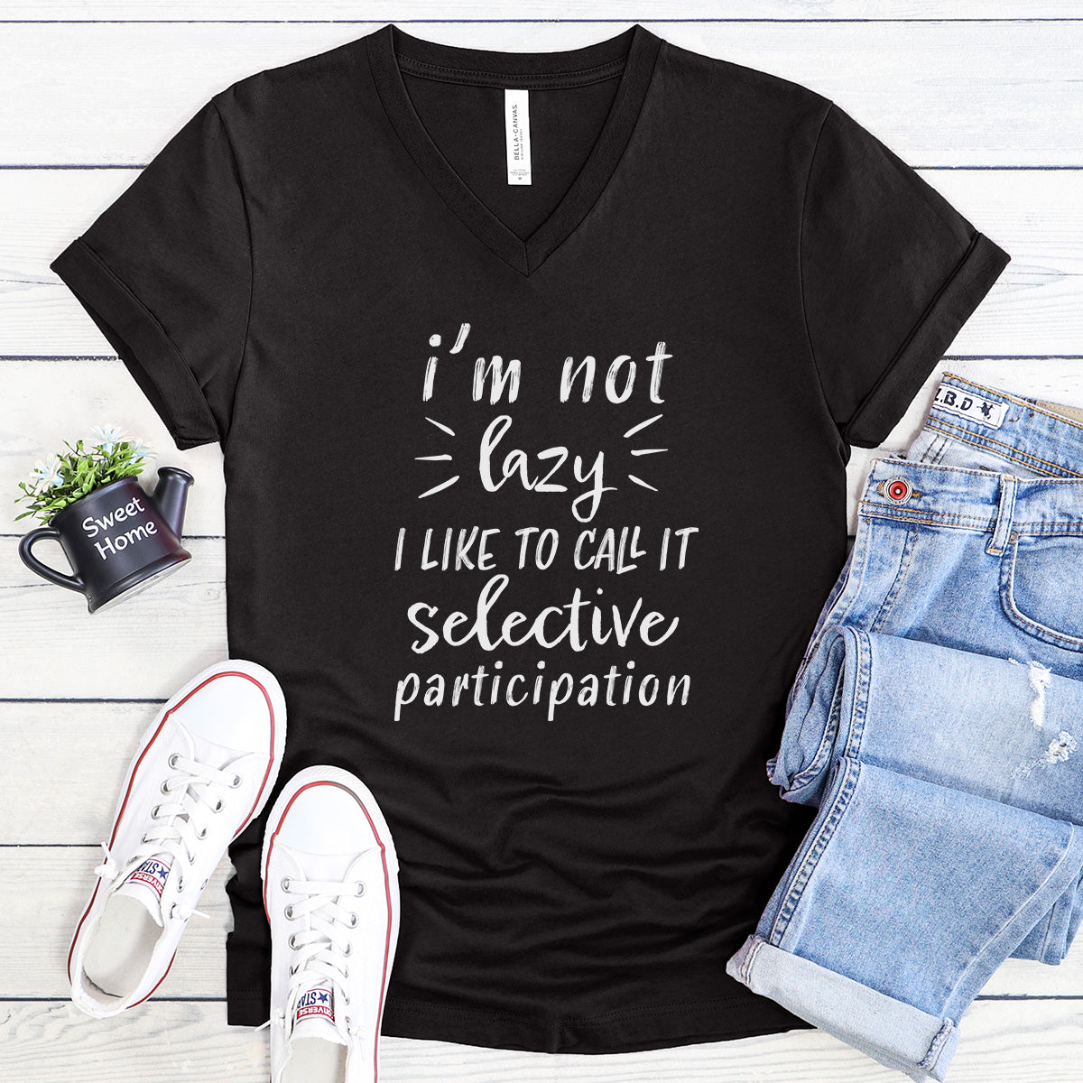 I'm Not Lazy I Like To Call It Selective Participation - V-Neck Tee