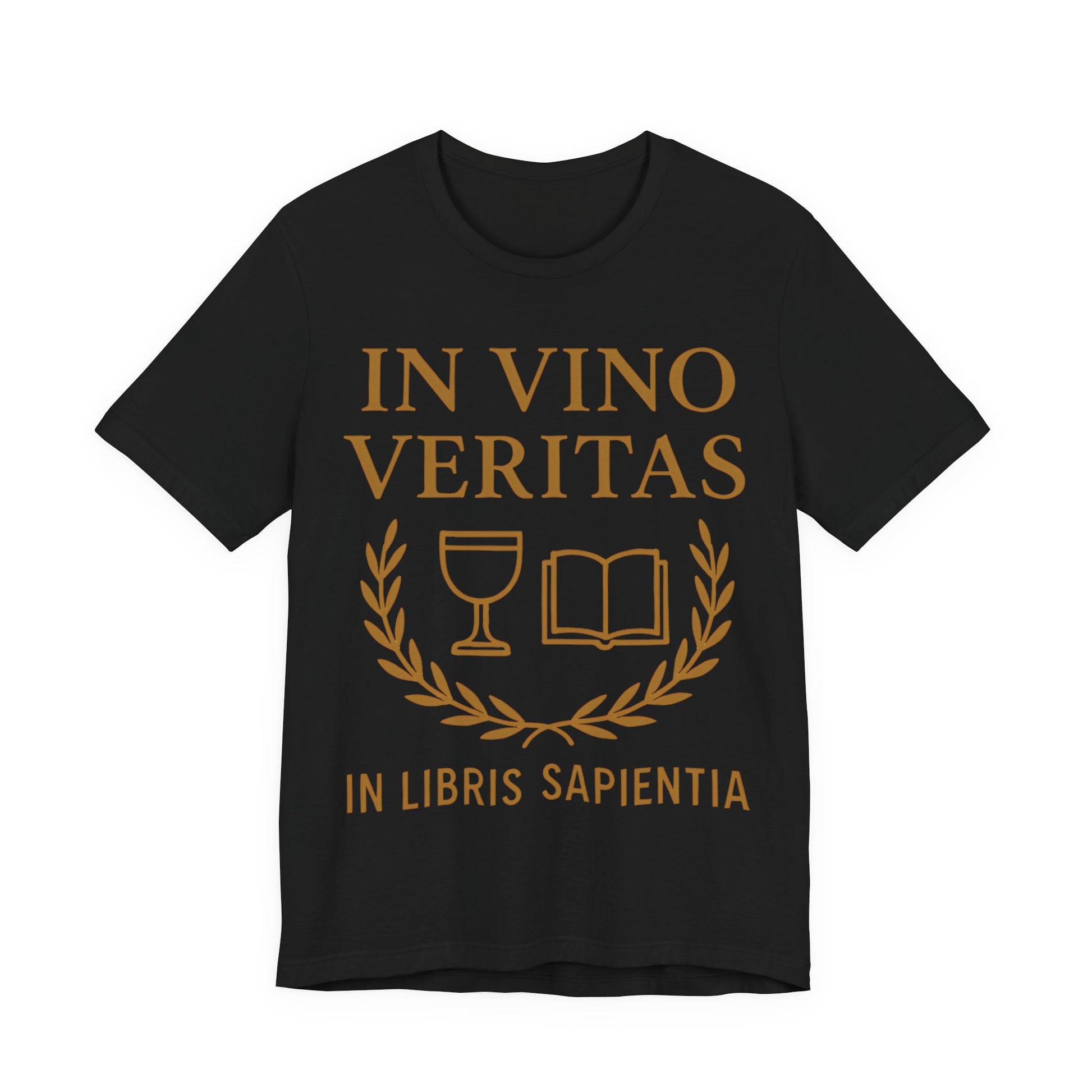 "In Vino Veritas, In Libris Sapientia" - A design for lovers of wine, wisdom, and well-worn books. It celebrates the belief that truth pours easily from a full glass and deeper understanding rises from a good read. Classic and scholarly, this piece blends indulgence with intellect. Perfect for those who savor philosophy as much as a fine vintage.