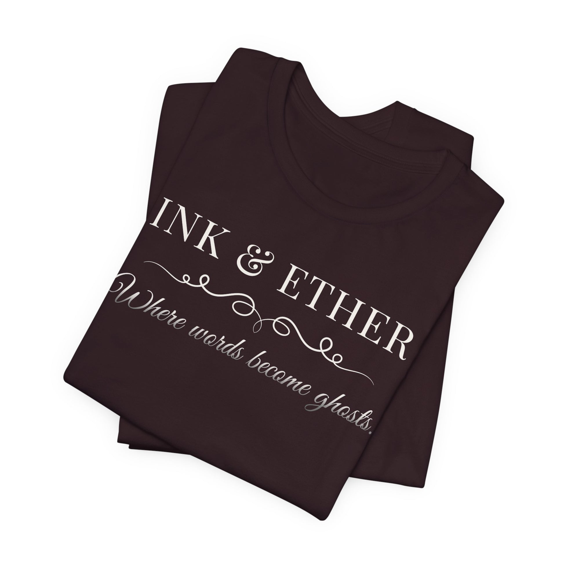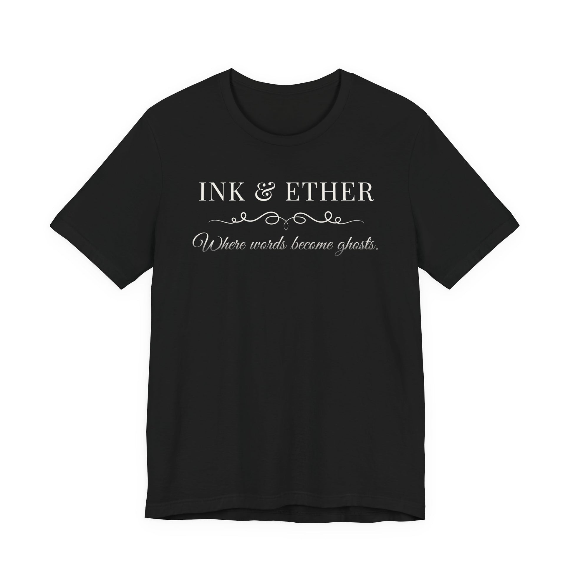 "Ink & Ether" - For alchemists of language and thinkers who dwell between the tangible and the imagined. Ink & Ether merges quill, smoke, and sigil-like flourishes into a design that celebrates the liminal space where ideas spark into being. It’s a shirt for those who love the ghostly process of creation — thoughts rising like vapor, then settling into form as ink on the page. A perfect companion for any mystic-minded writer, dreamer, or scholar.