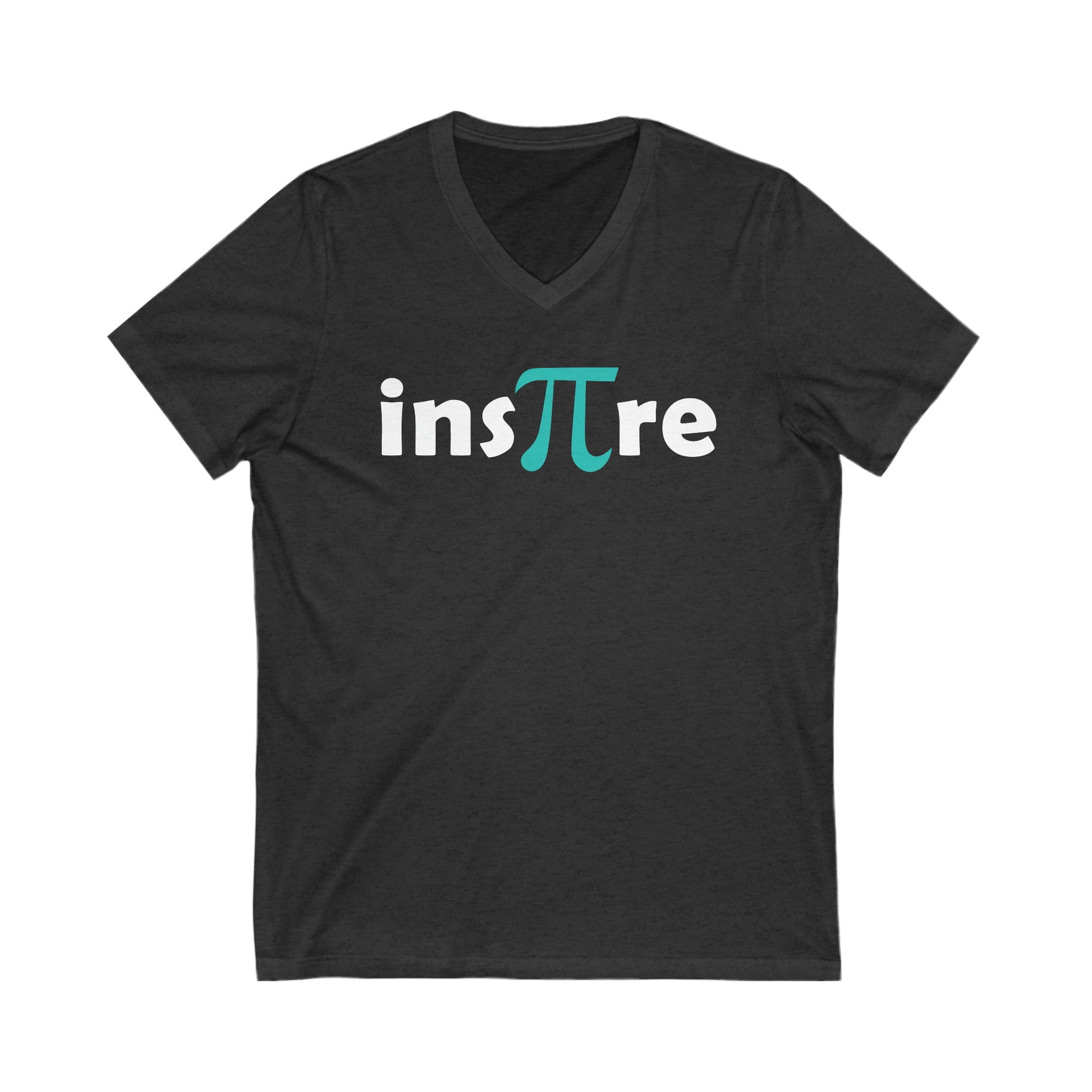 Way to inspire your math students! The word "inspire" is written with the Pi symbol in turquoise as part of the word. You can wear this Tee as a team, or just enjoy representing in your own classroom. This lightweight jersey knit top is a go-to choice for meetings, events, field trips, or to show your school spirit! Available on Black, Navy, or Deep Heather Grey, this unisex sized Tee will keep you comfortable all day long.