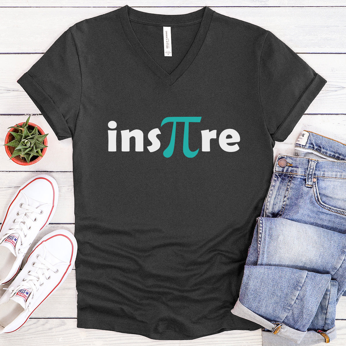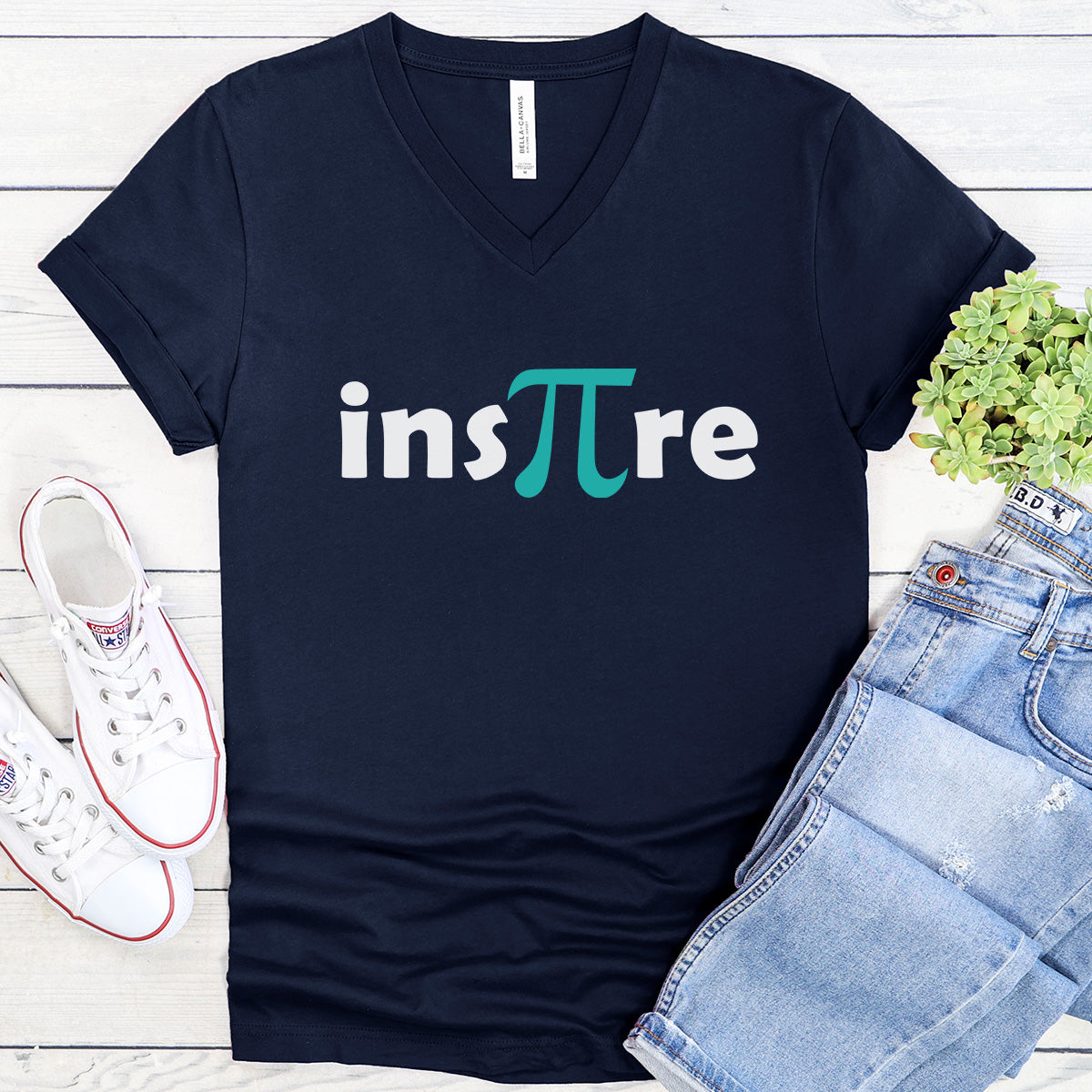 Inspire with the Pi Symbol in turquoise - Teacher V-Neck Tee