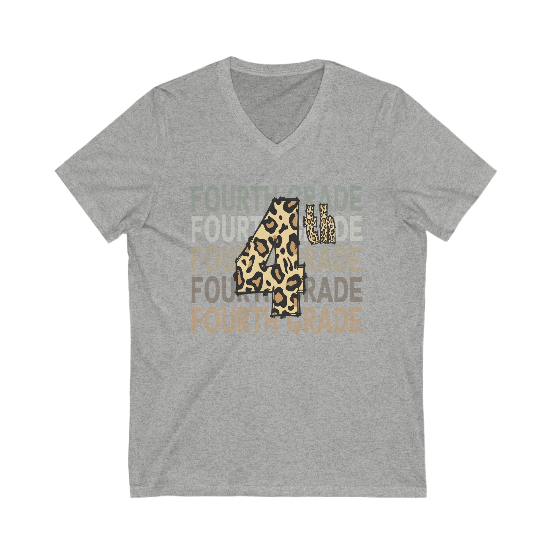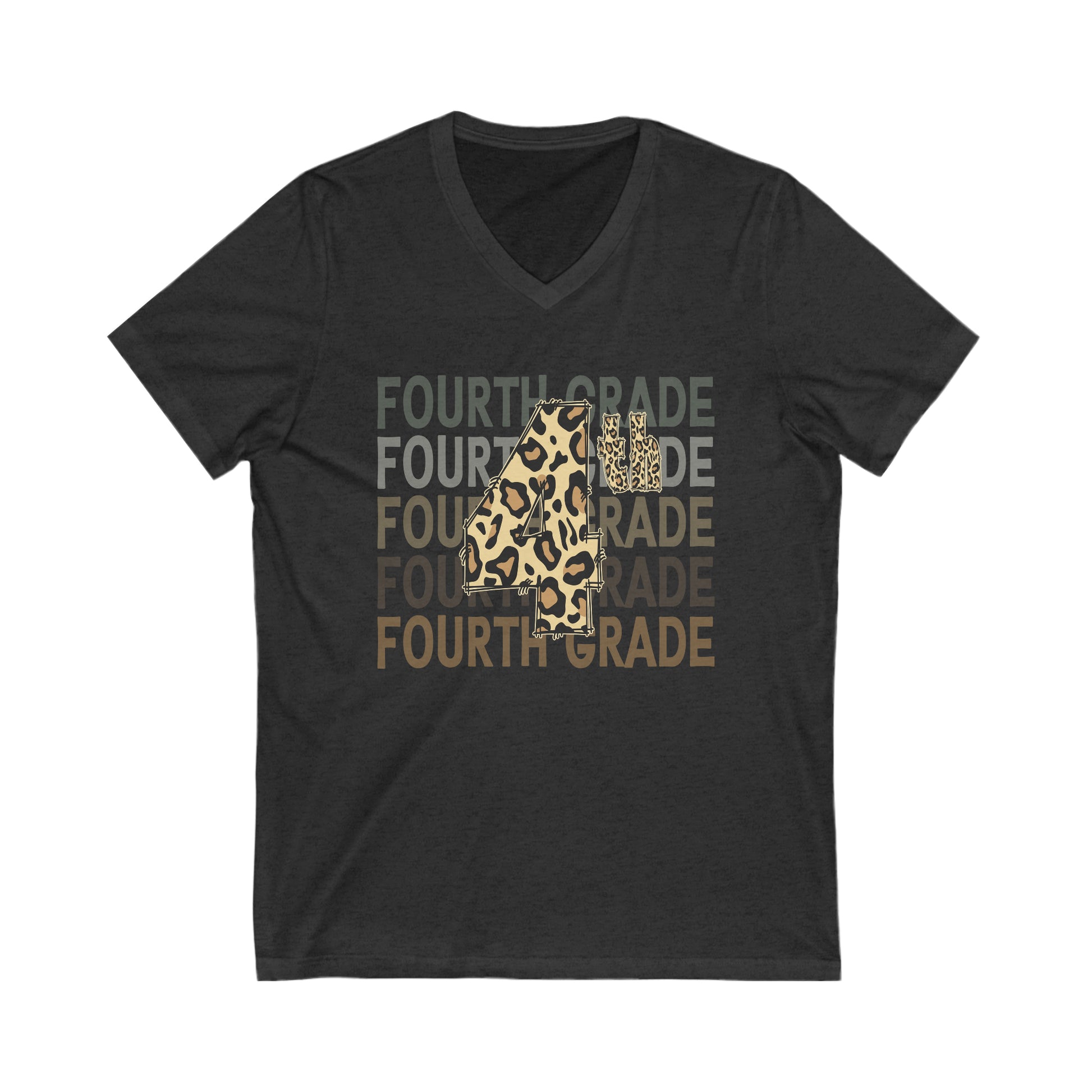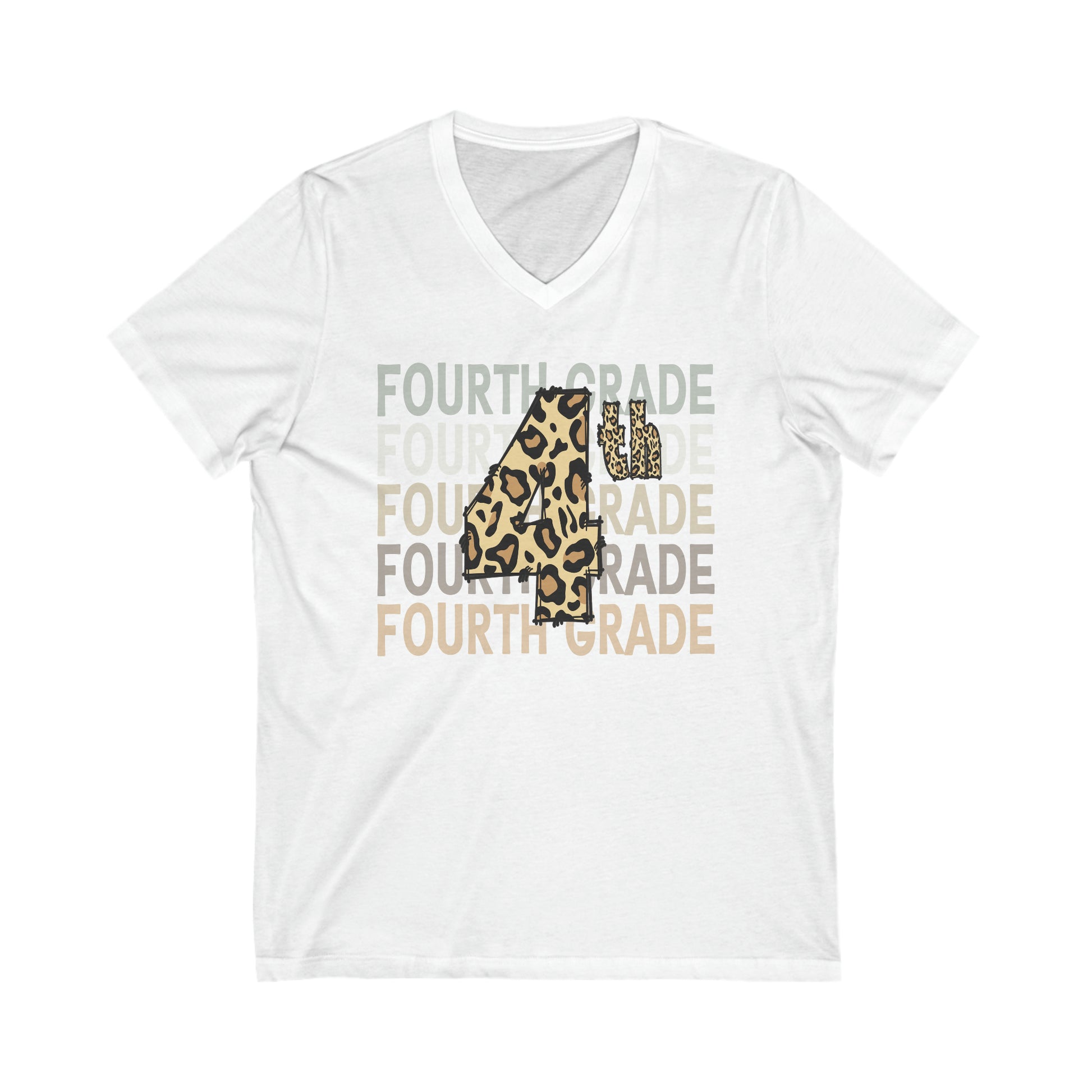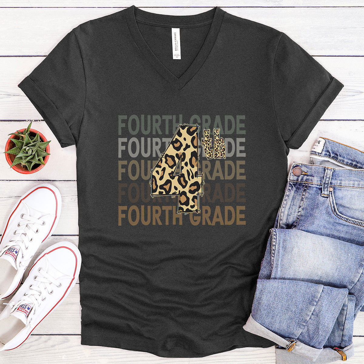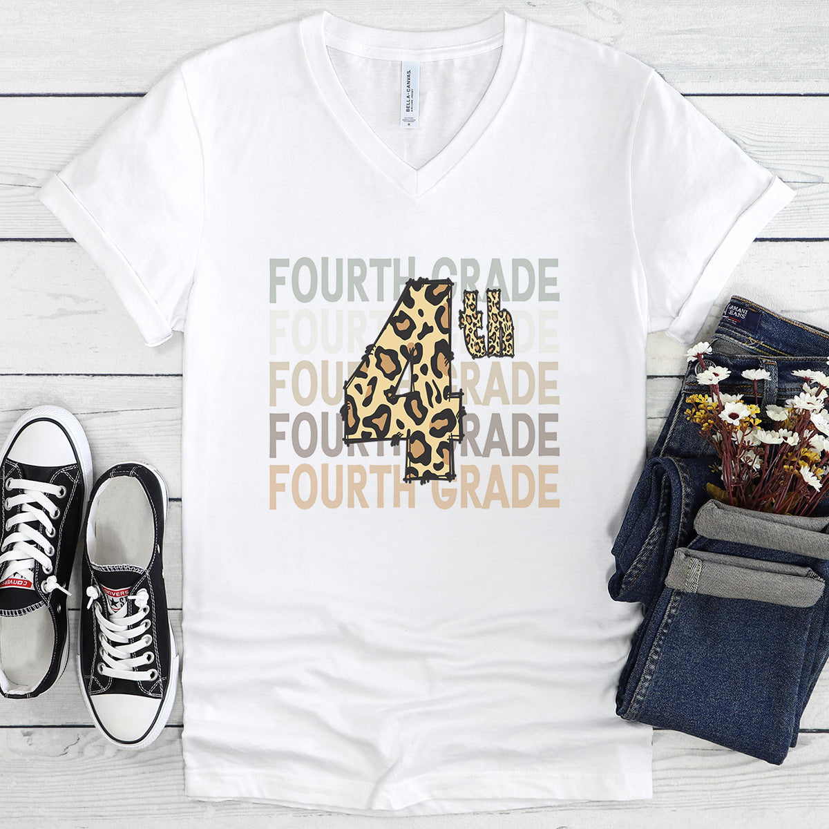 Leopard Print 4th on Fourth Grade - V-Neck Tee