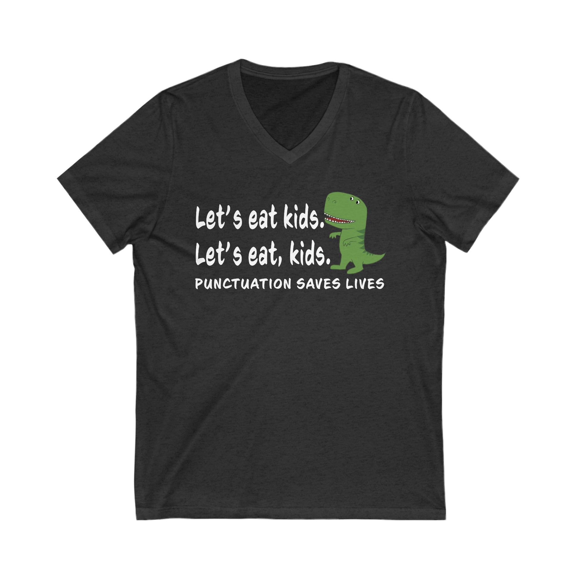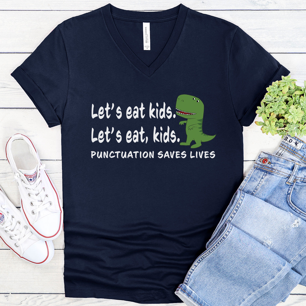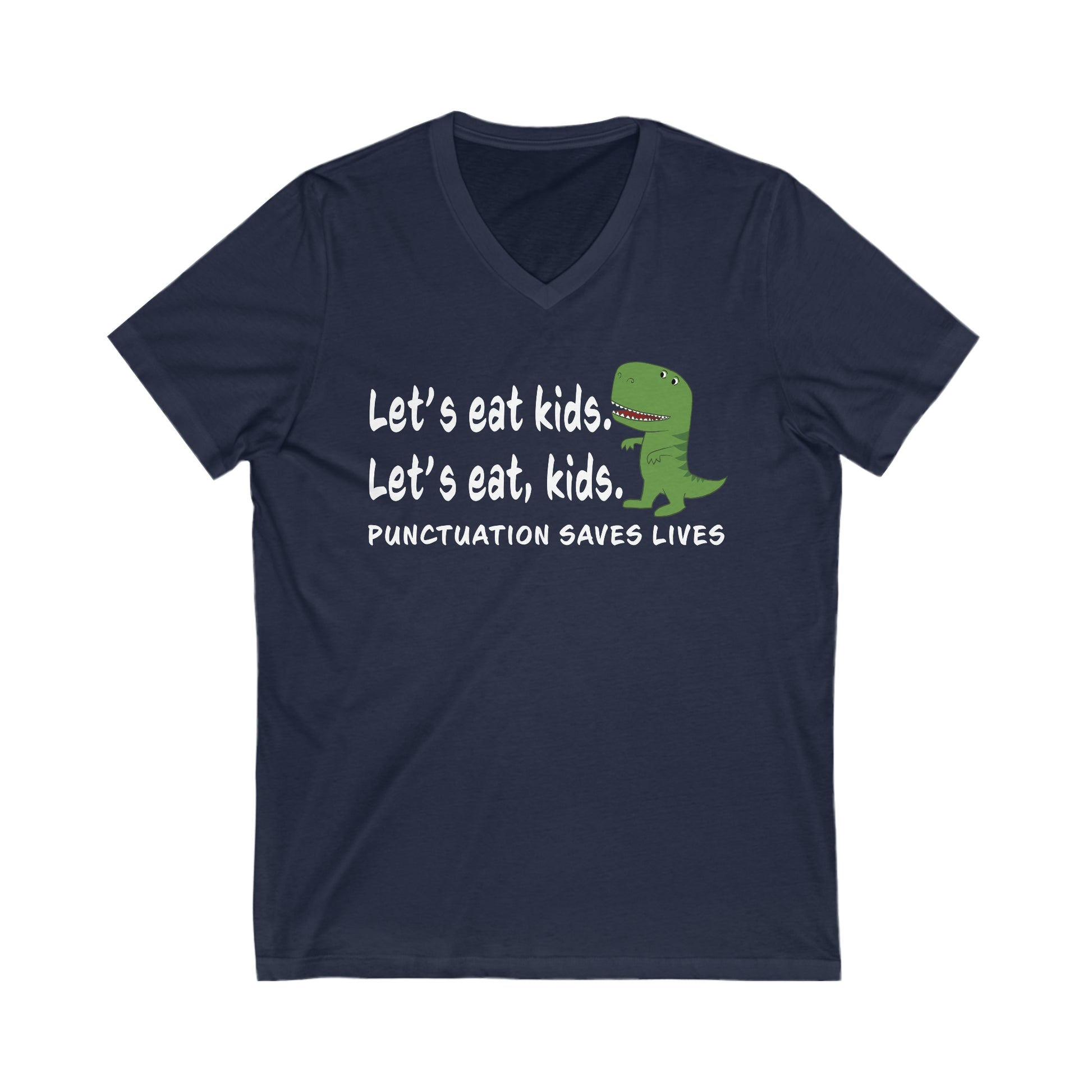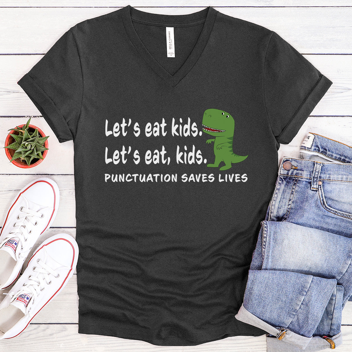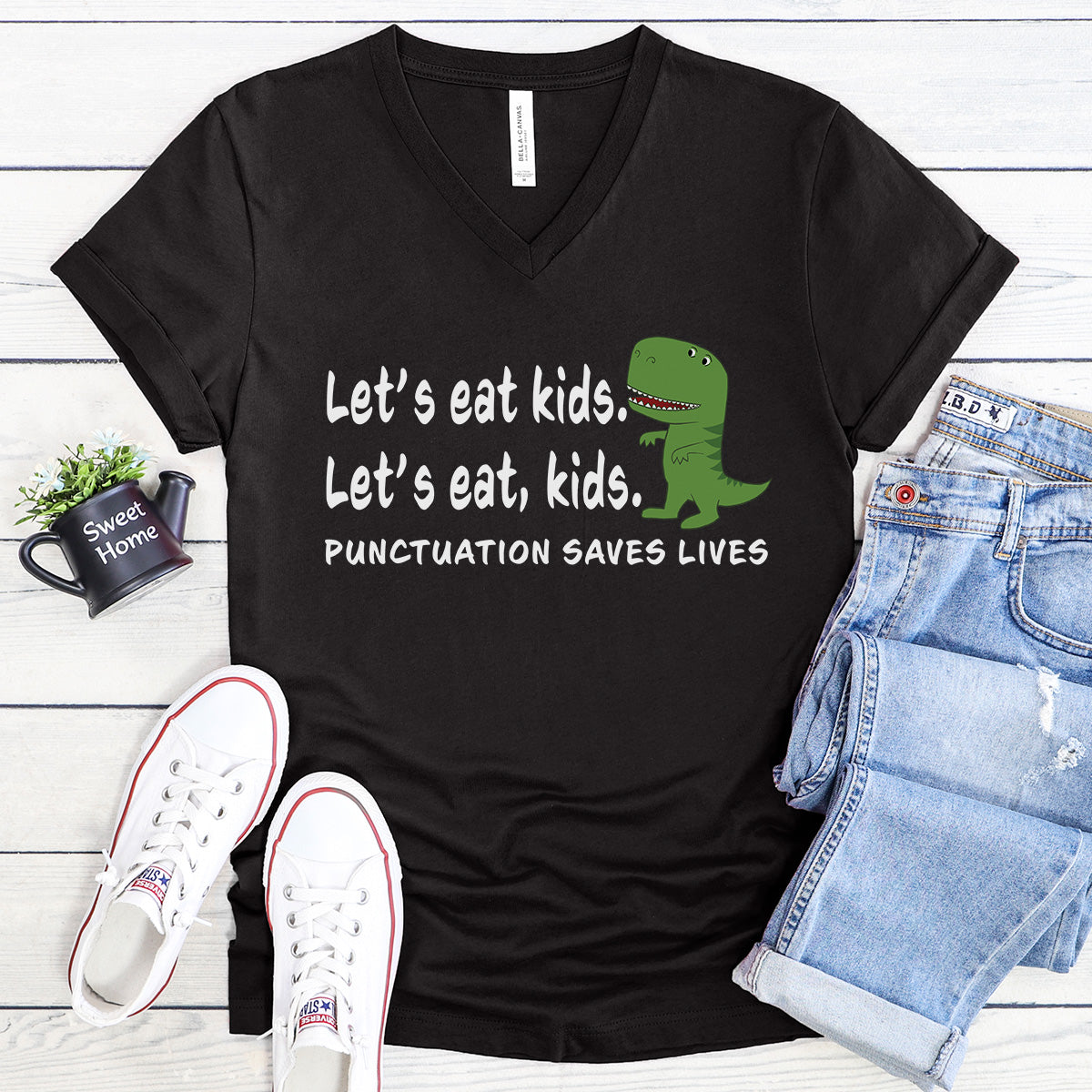 "Let's Eat Kids" Funny Grammar V-Neck Tee