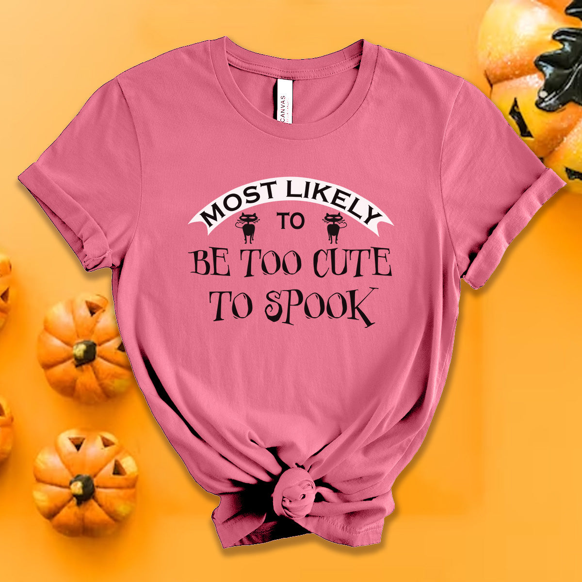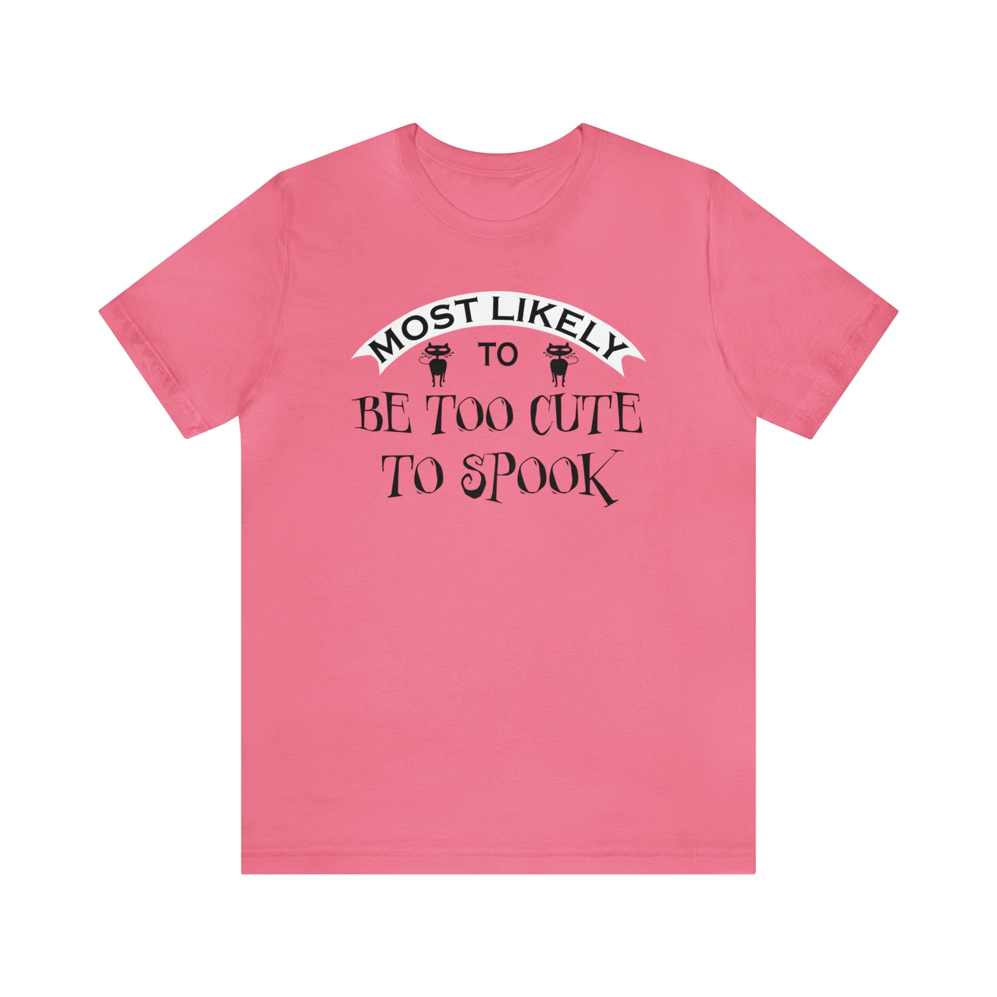 Go Squad! It's time to round up your crew for the Halloween Festivities! This tee says, Most Likely To Be Too Cute To Spook and is printed on Charity Pink. Every Tee in this squad group comes in a different color, so, you can look like a team, but still express your individuality! Let the spooky fun begin!