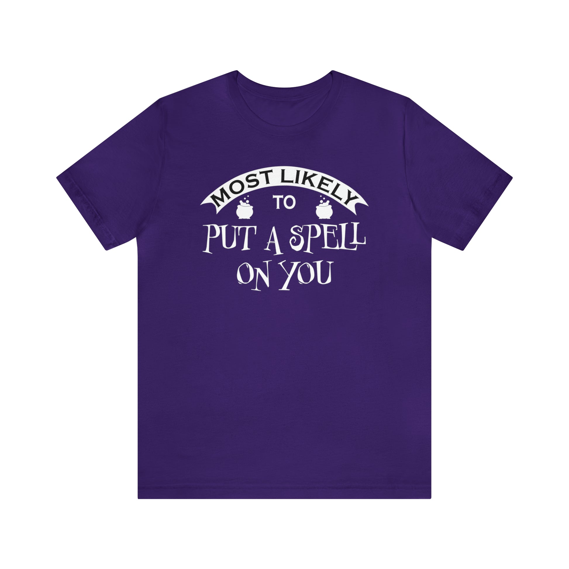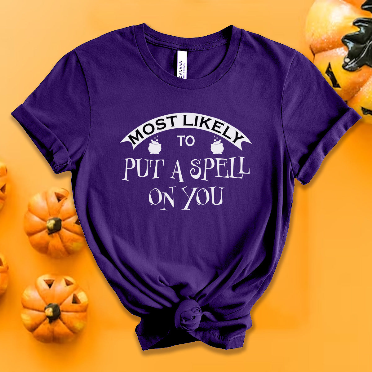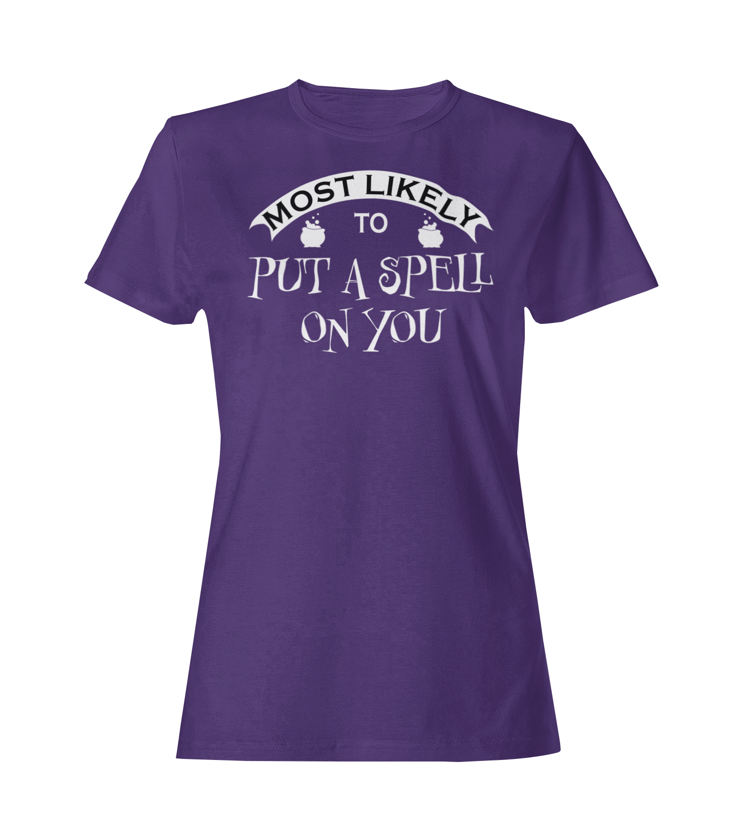 Go Squad! It's time to round up your crew for the Halloween Festivities! This tee says, Most Likely To Put A Spell On You and is printed on Team Purple. Every Tee in this squad group comes in a different color, so, you can look like a team, but still express your individuality! Let the spooky fun begin!