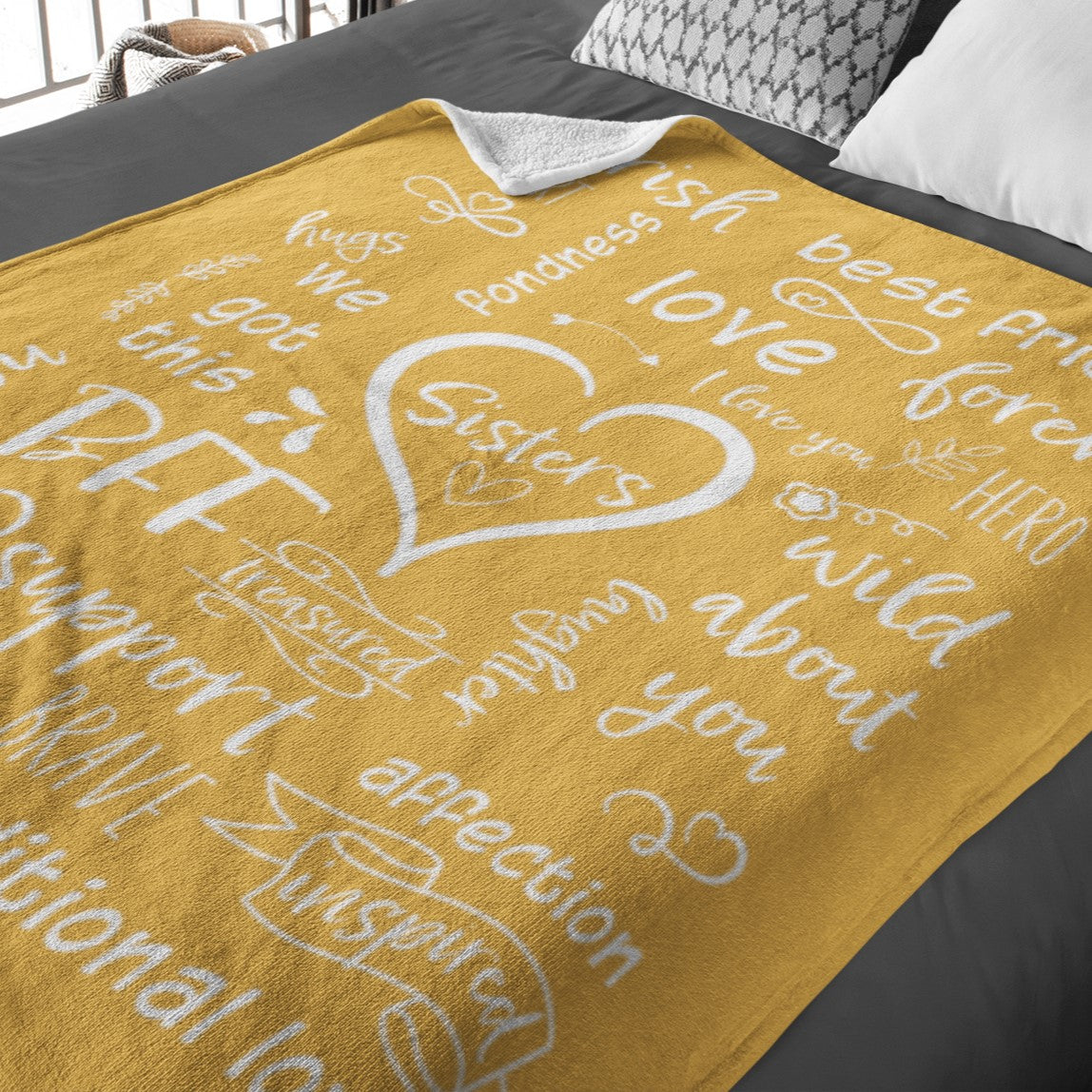 Let your Sister know how much she means to you. Give the gift of coziness this season with the Sisters - We Got This Velveteen Plush or Sherpa blanket. Imagine her eyes lighting up with joy when she unwraps this oh-so-soft blanket featuring word art describing all the precious things you love about your sister! Choose between the Velveteen Plush or Sherpa style blankets. Available in two sizes, Medium 50 x 60 inches or Large 60 x 80 inches, you are sure to find the perfect fit for you and yours.