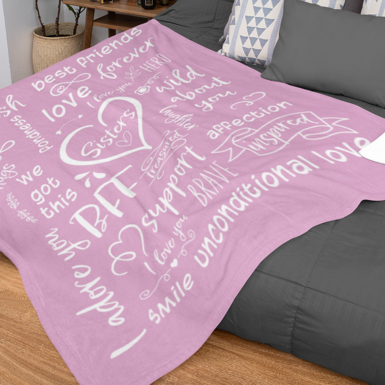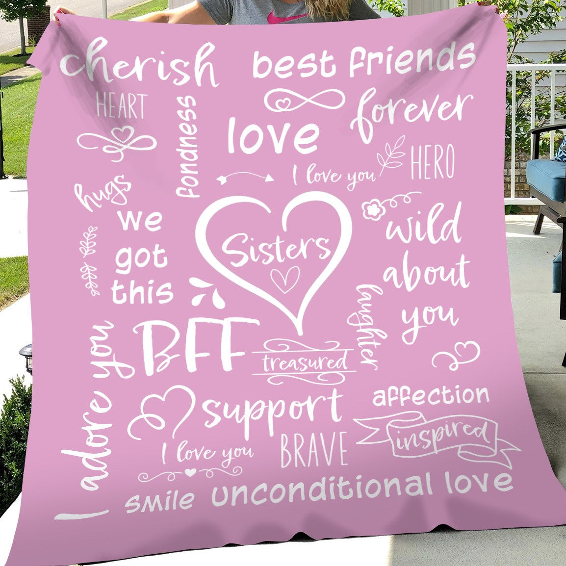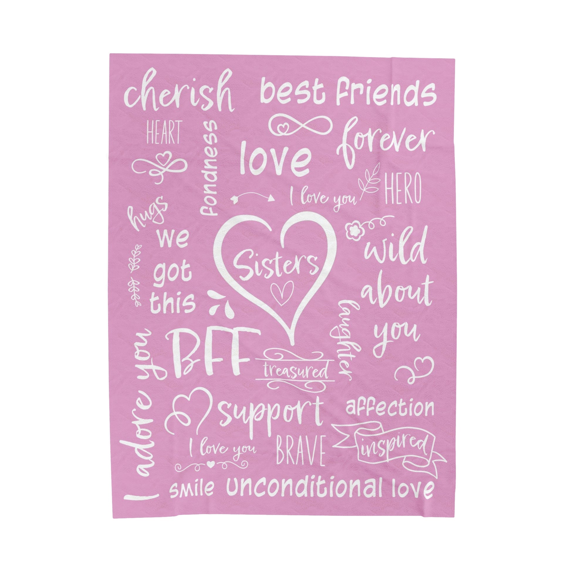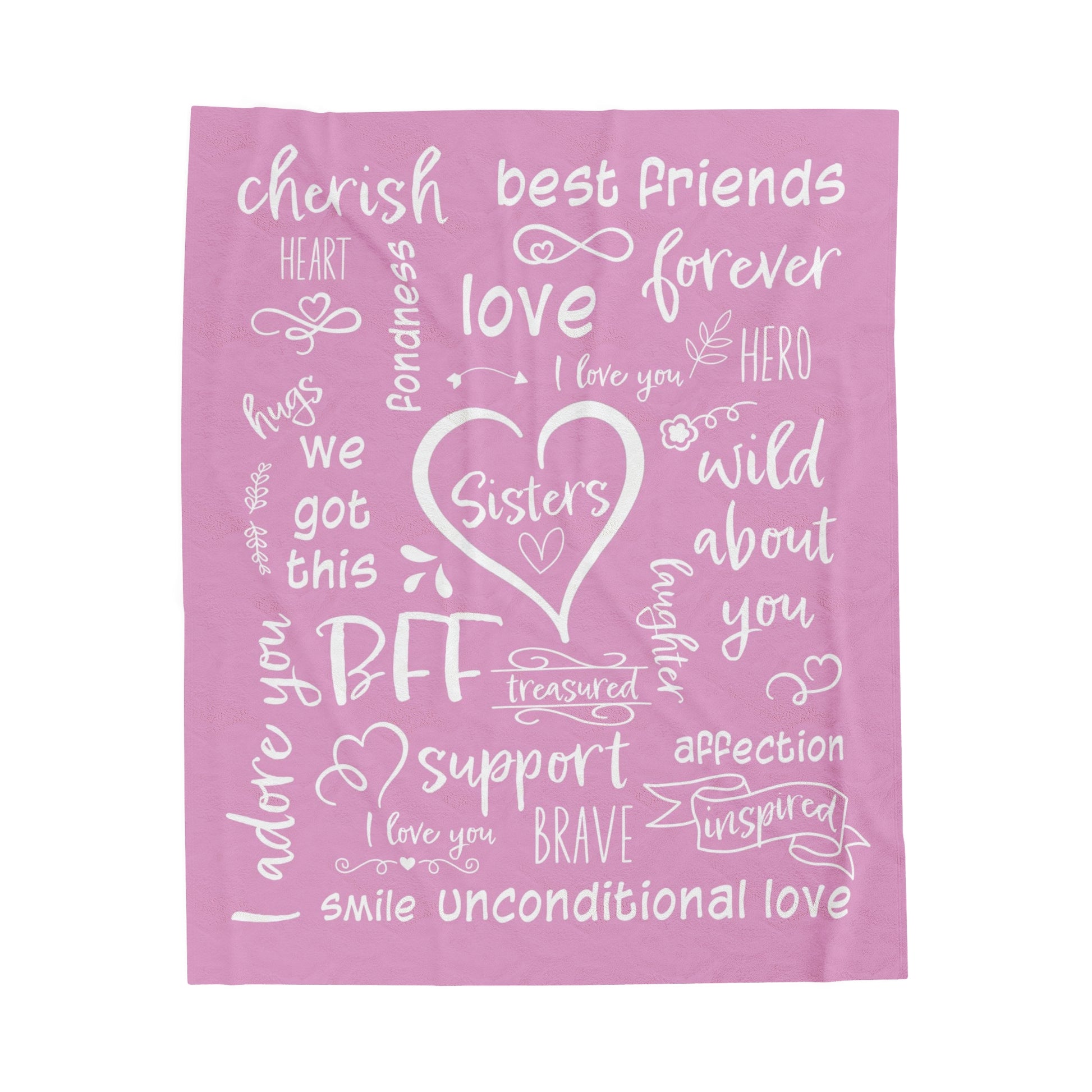 Let your Sister know how much she means to you. Give the gift of coziness this season with the Sisters - We Got This Velveteen Plush or Sherpa blanket. Imagine her eyes lighting up with joy when she unwraps this oh-so-soft blanket featuring word art describing all the precious things you love about your sister! Choose between the Velveteen Plush or Sherpa style blankets. Available in two sizes, Medium 50 x 60 inches or Large 60 x 80 inches, you are sure to find the perfect fit for you and yours.