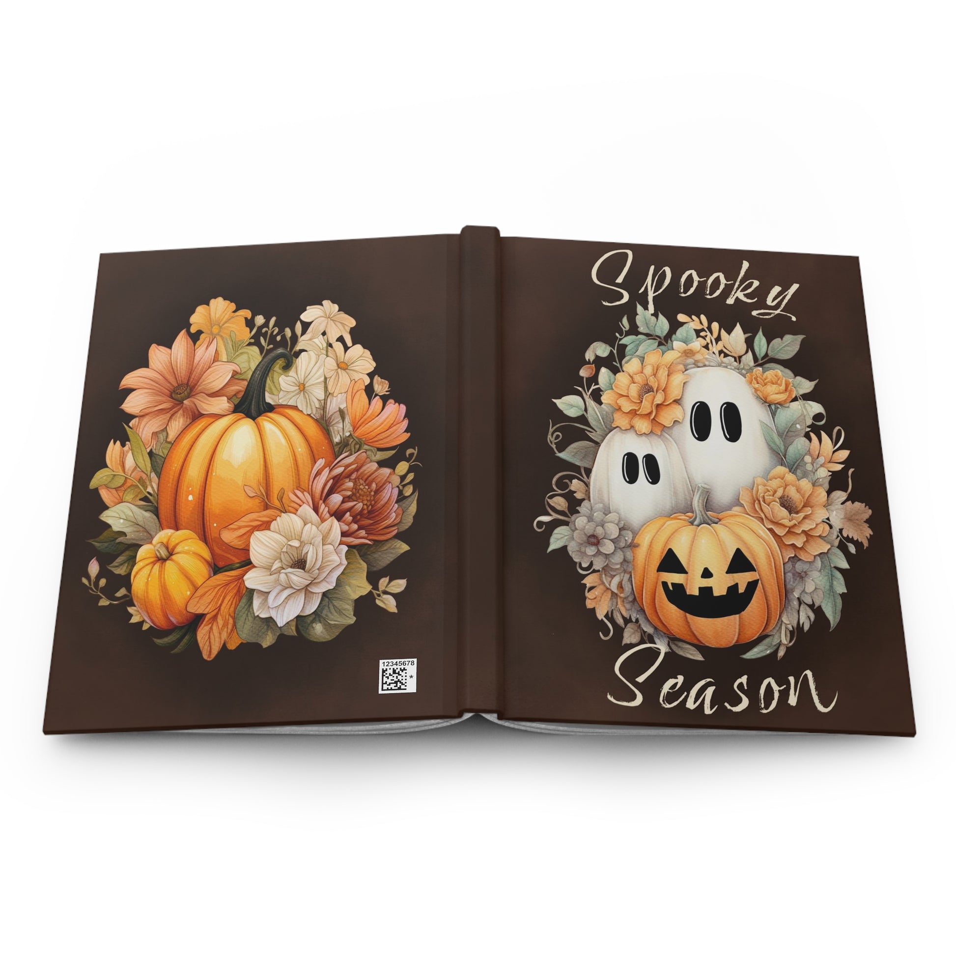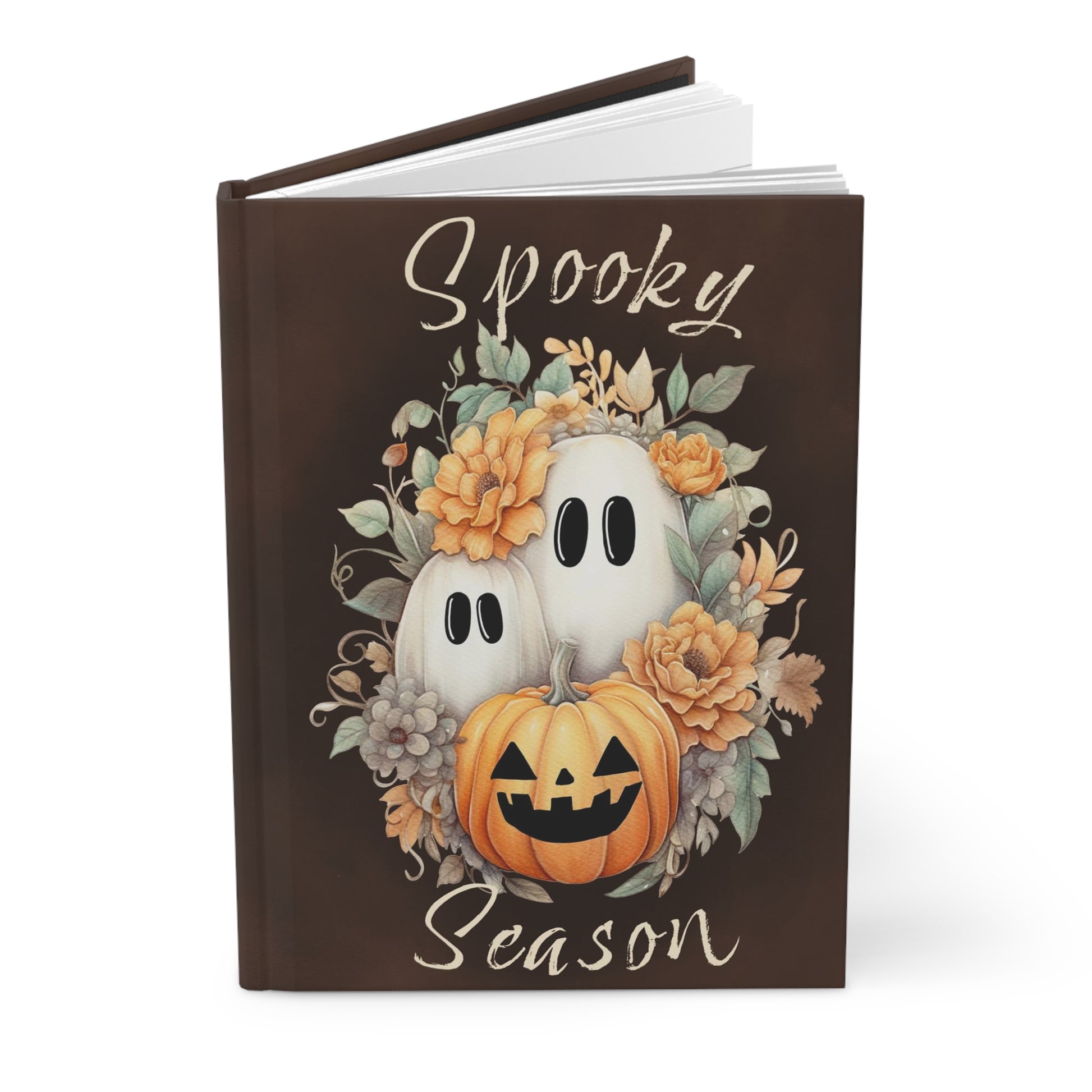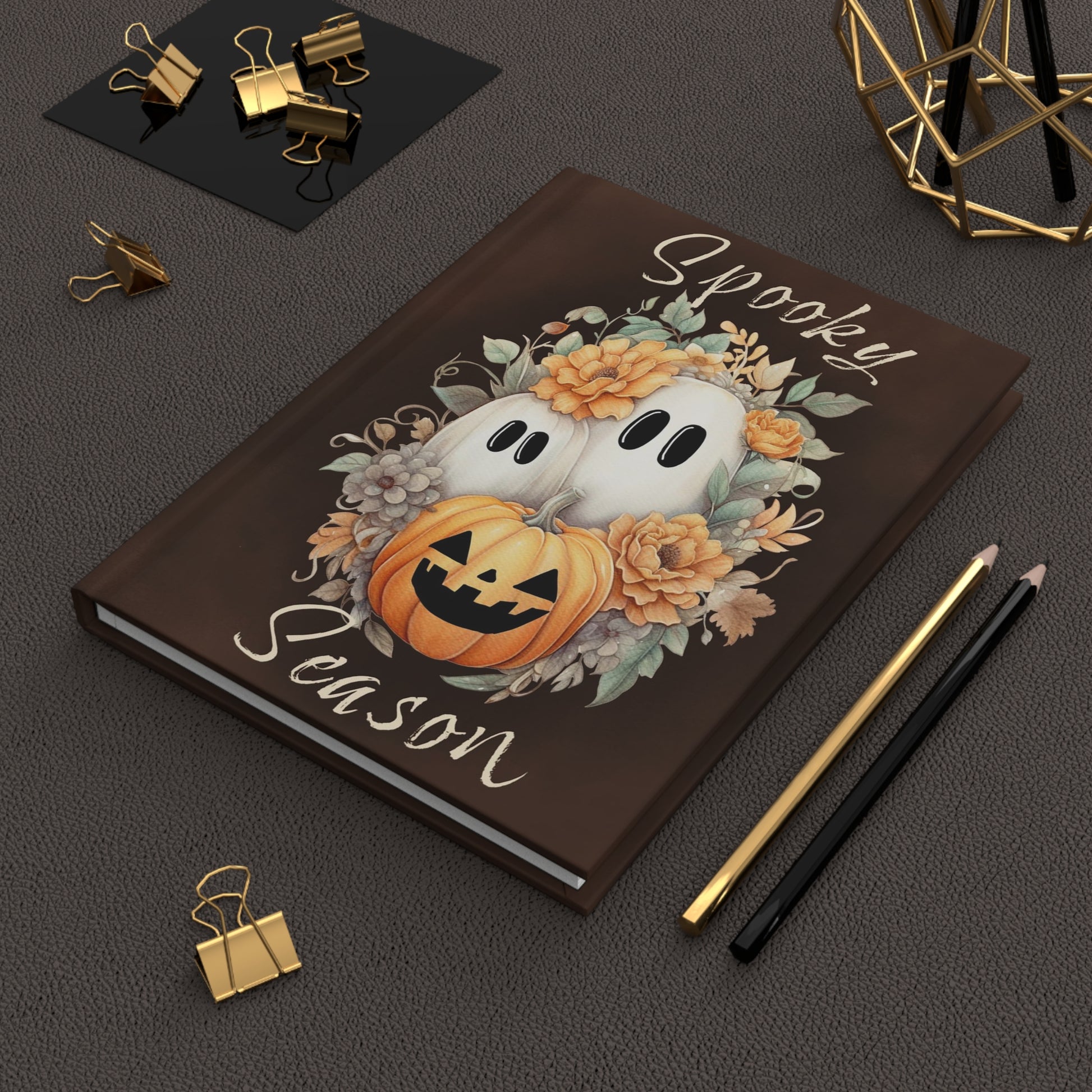 Whether you are making lists, party planning, or gathering recipes, the "Spooky Season" hardcover journal is a perfect fit. Two shy but friendly ghosts sit among flowers and pumpkins on a rich brown background. The journal features 150 lined pages and is 5.75" wide, 8" tall. Imagine using this for personal journal entries, classes, grocery lists, or for weekly and monthly planning! Journals make great gifts, too!