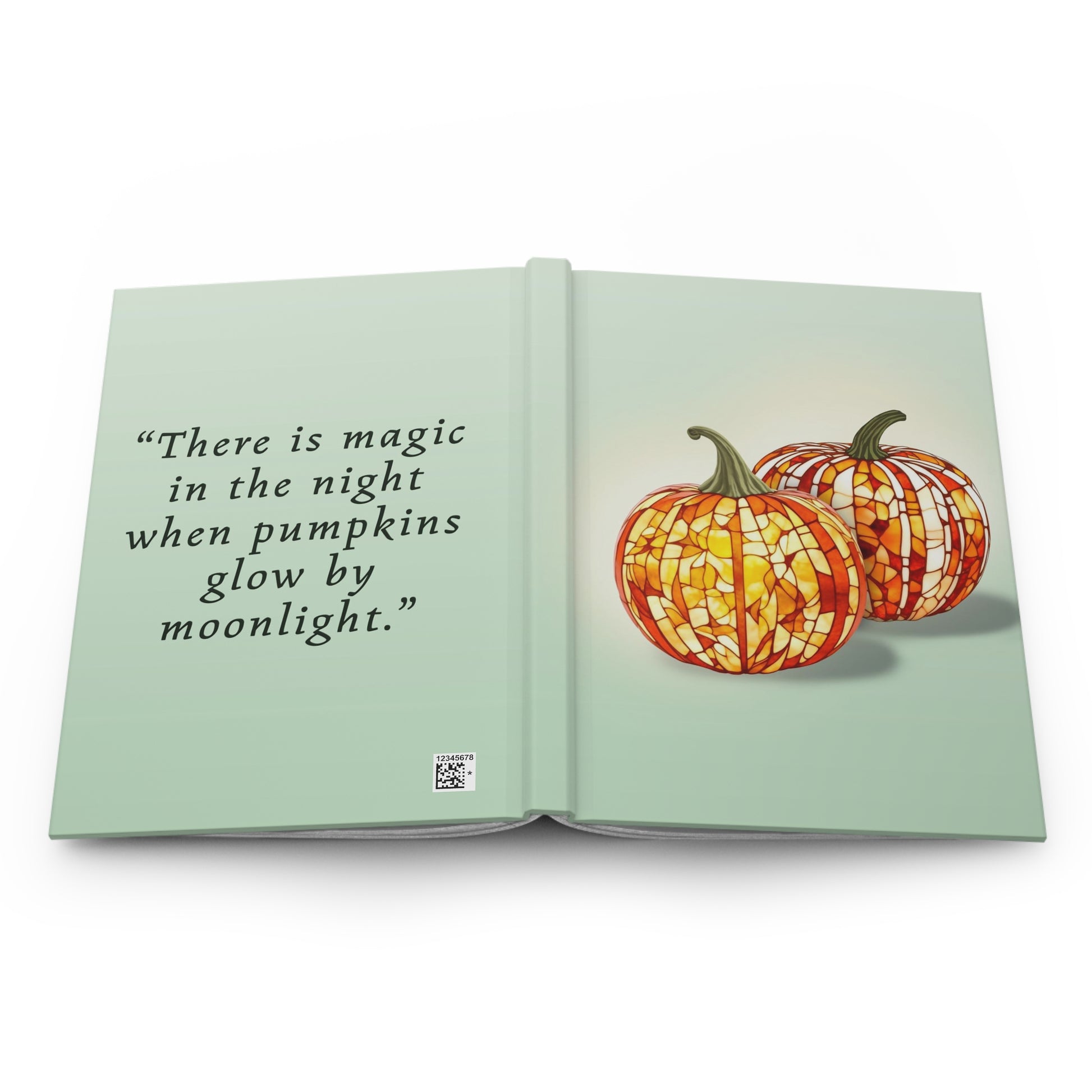 Whether you are making lists, party planning, or noting what you are grateful for each day, the "Stained Glass Pumpkins" hardcover journal is a perfect fit. Two glowing stained glass pumpkins adorn the front cover in oranges and yellows against a green background while the back cover reads, "There is magic in the night when pumpkins glow by moonlight." The journal features 150 lined pages and is 5.75" wide, 8" tall. Imagine using this for personal journal entries, classes, grocery lists, or for weekly and monthly planning! Journals make great gifts, too!