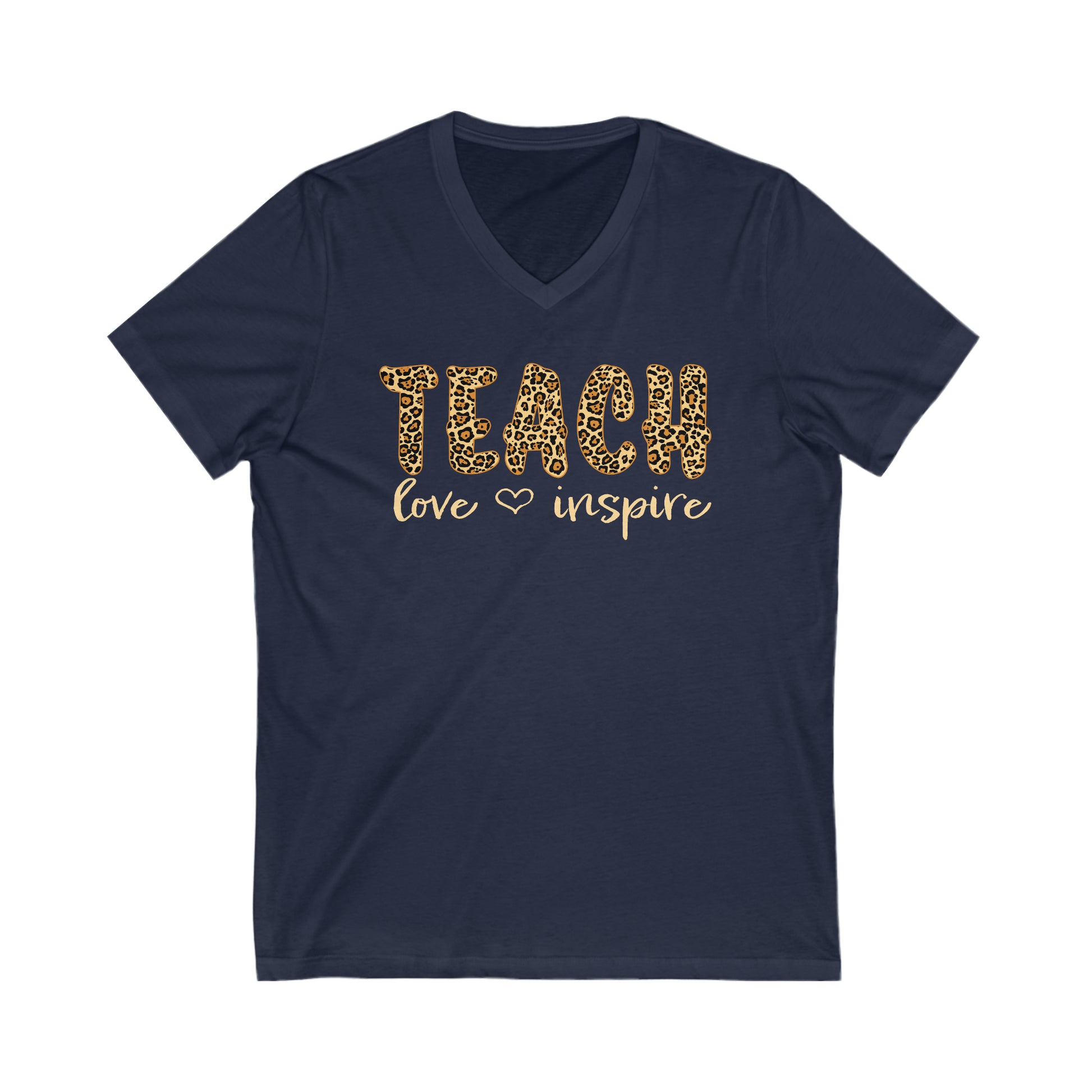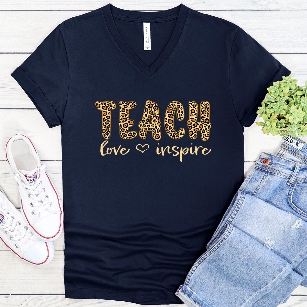 Teach Love Inspire leopard print - Teacher V-Neck Tee