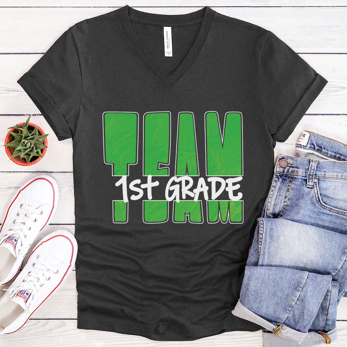 TEAM 1st Grade - Leaf Green - V-neck T-shirt