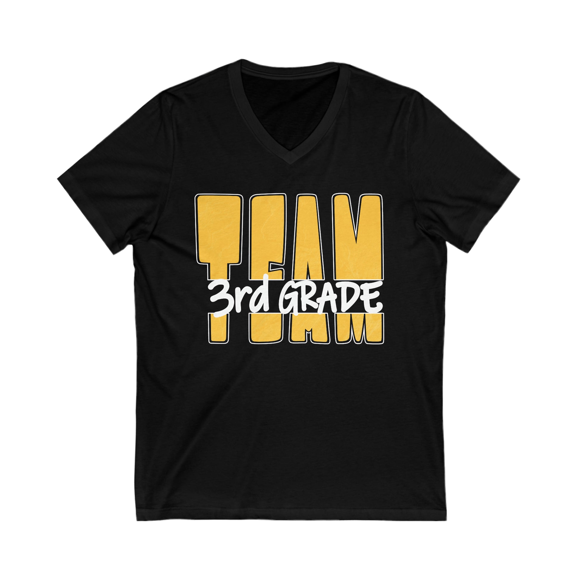 Way to go TEAM! You will stand out as you stand together in this bright Sunglow with White outline TEAM T-shirt announcing you are with the 3rd grade team! This lightweight jersey knit top is a go-to choice for meetings, events, field trips, or to show your school spirit! Available on Black or Deep Heather Grey, this unisex sized Tee will keep you comfortable all day long.