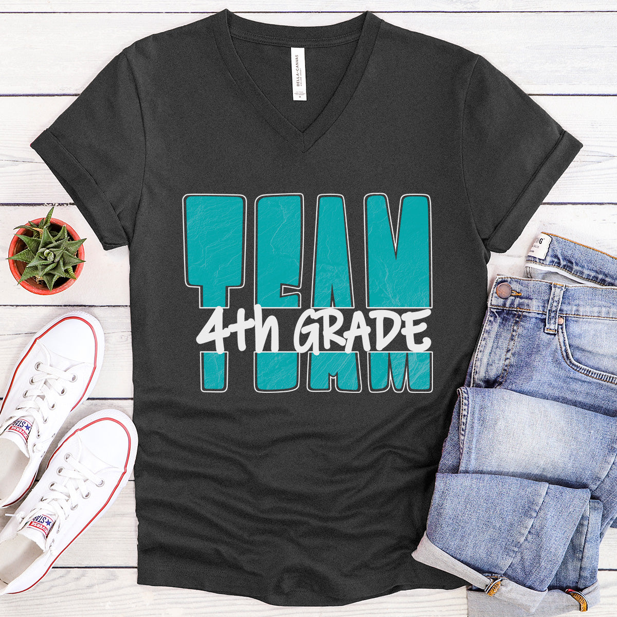 TEAM 4th Grade - Bold Turquoise - V-neck T-shirt