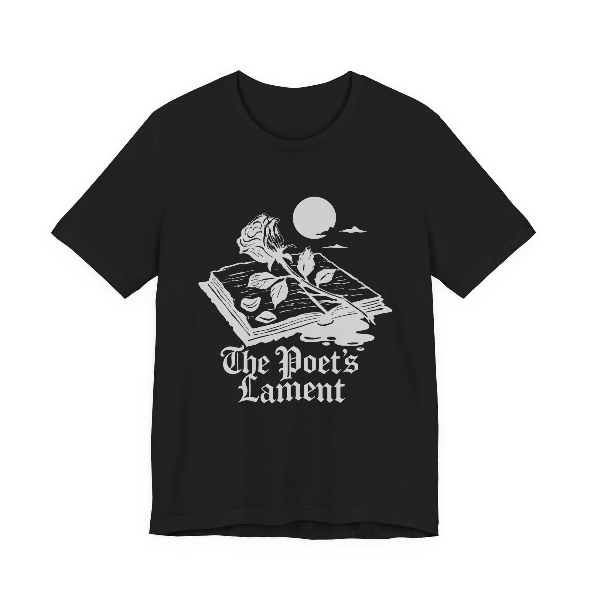 "The Poet's Lament" - This iteration leans into secrecy: layered text, soft distressing, and a moon partially hidden behind misty script. It evokes the feeling of a verse half-remembered from childhood or a stanza erased by time. The design is subtle, whisper-soft, perfect for the introvert who prefers to be read slowly. A wearable fragment of forgotten poetry.