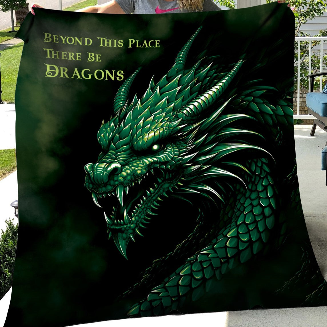 Give the gift of coziness this season with the There Be Dragons Velveteen Plush or Sherpa blanket. Imagine their eyes lighting up with joy when they unwrap this oh-so-soft blanket featuring a fierce and loyal dragon with the message, "Beyond This Place There Be Dragons." There are four different color dragons for you to select from: Green, Black, Purple, or Red. Choose between the Velveteen Plush or Sherpa style blankets. Available in two sizes, Medium 50 x 60 inches or Large 60 x 80 inches, you are sure to find the perfect fit for you and yours.