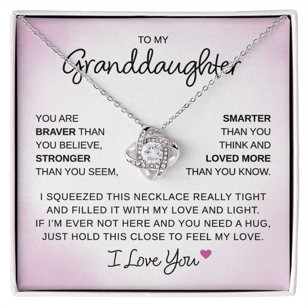 To My Granddaughter - I Squeezed This Necklace - Love Knot Necklace - Gift for Birthday, Christmas, or Special Occasion