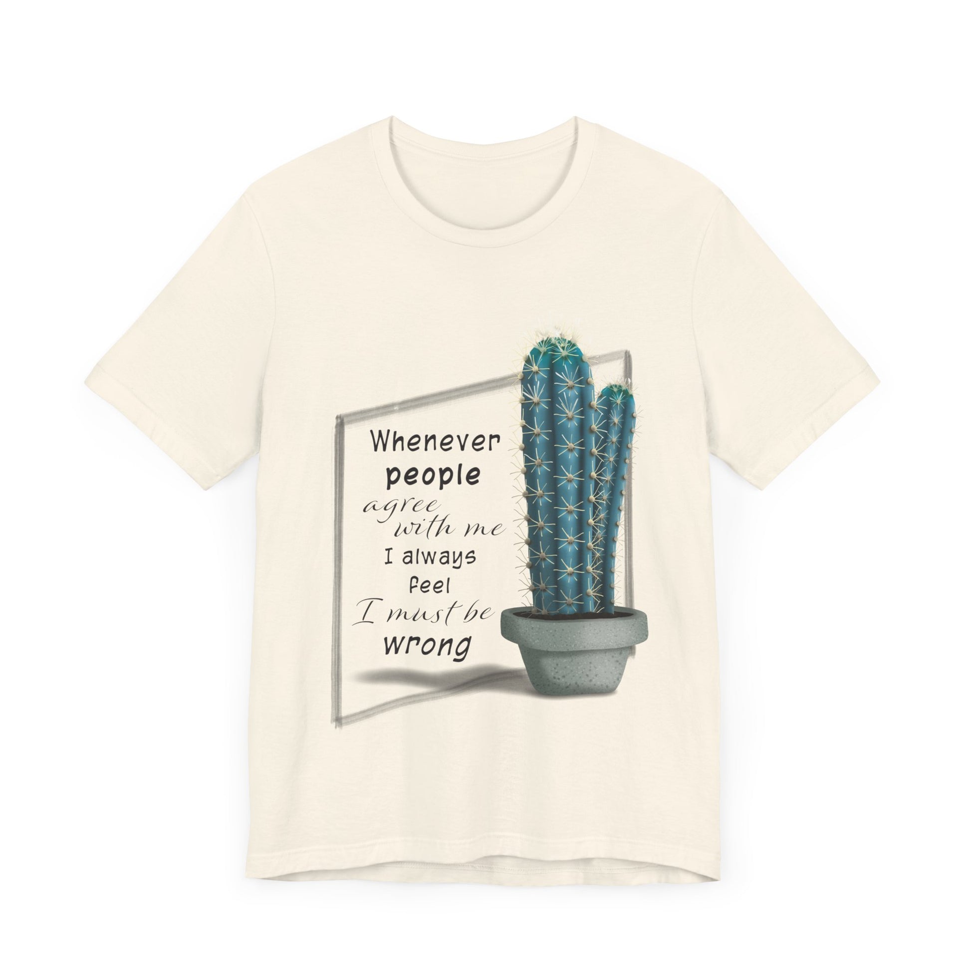 What did the first blue cactus say to the second one? - Whenever people agree with me I always feel I must be wrong. Hey, its funny when you are wearing the shirt! A delightful in house design featuring an Oscar Wilde quote, whether you choose the heather mauve or athletic heather gray T-shirt color, you will always be right!